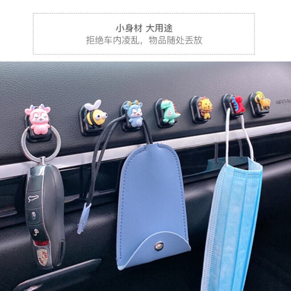 乐往汽车内饰小挂钩 车内前排装饰用品 粘贴卡通座椅背车载挂勾6个装