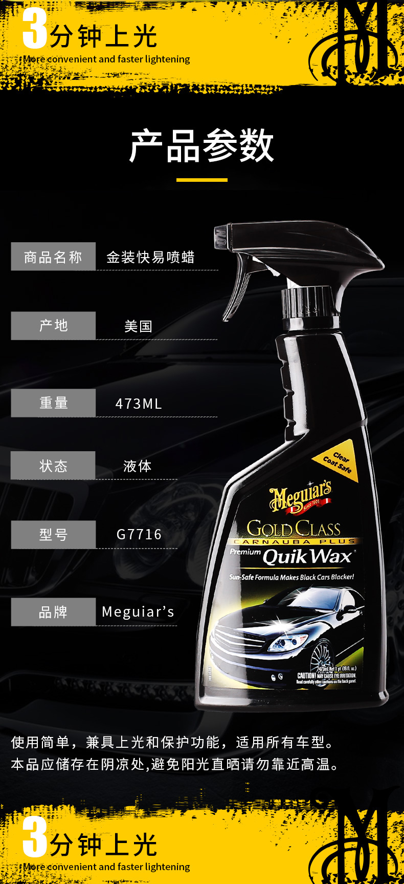金装快易喷蜡去污上光抛光蜡含棕榈汽车美容手喷养护蜡汽车用品