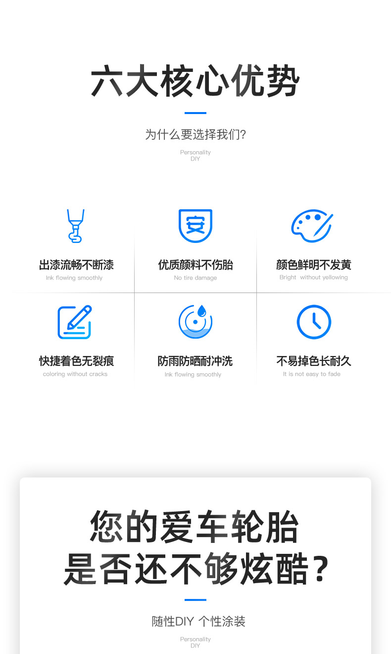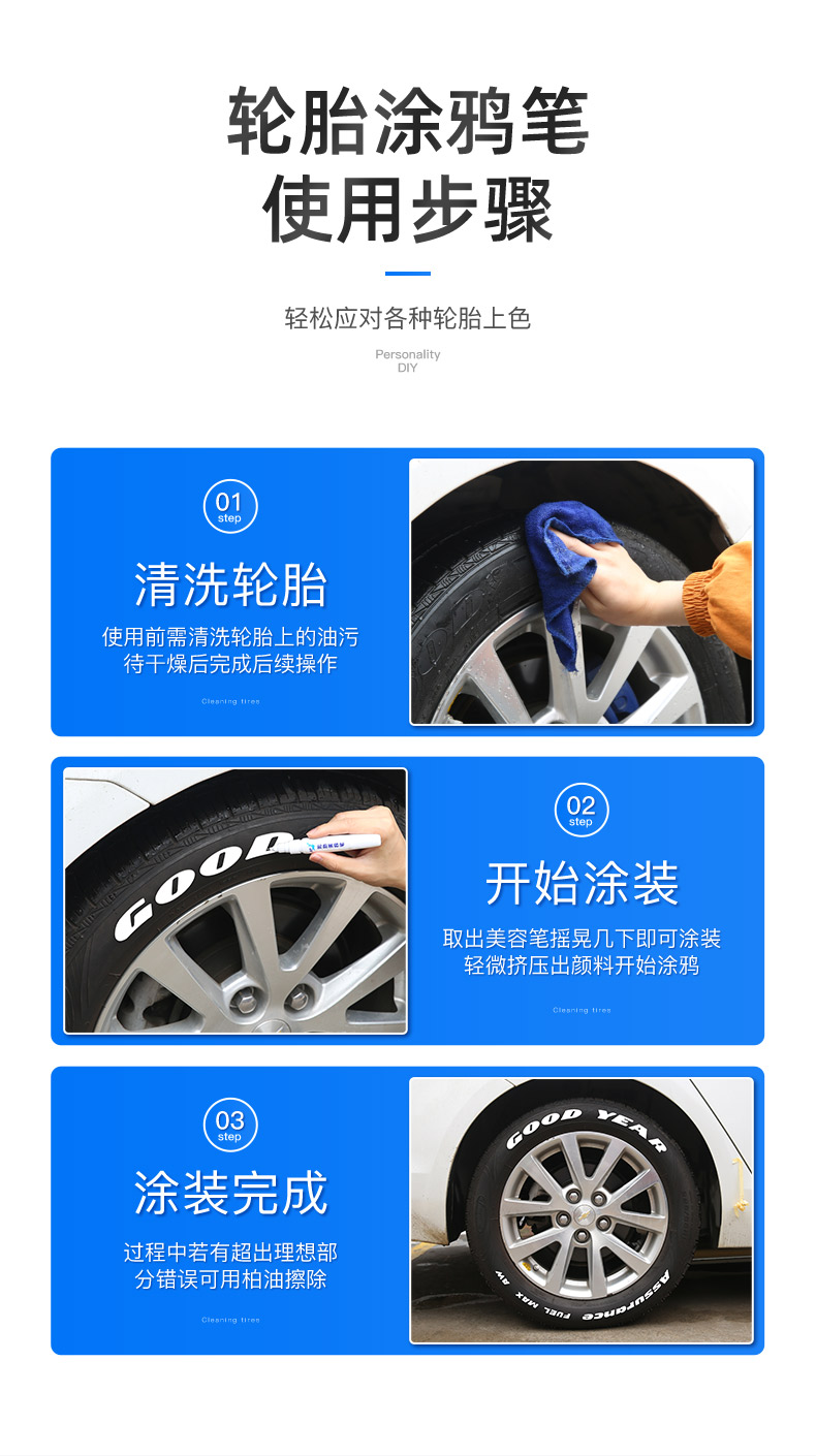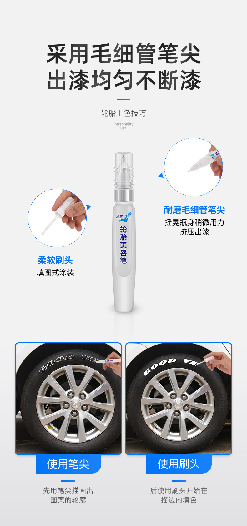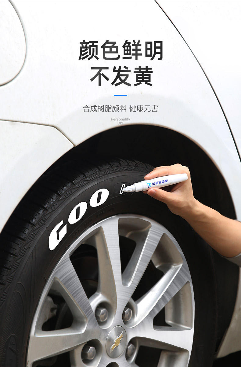 轮胎美容笔白色宝马奥迪奔驰长安福特雪佛兰汽车轮胎字母笔不掉色描胎笔摩托改装贴纸防水持久油性改色美容笔