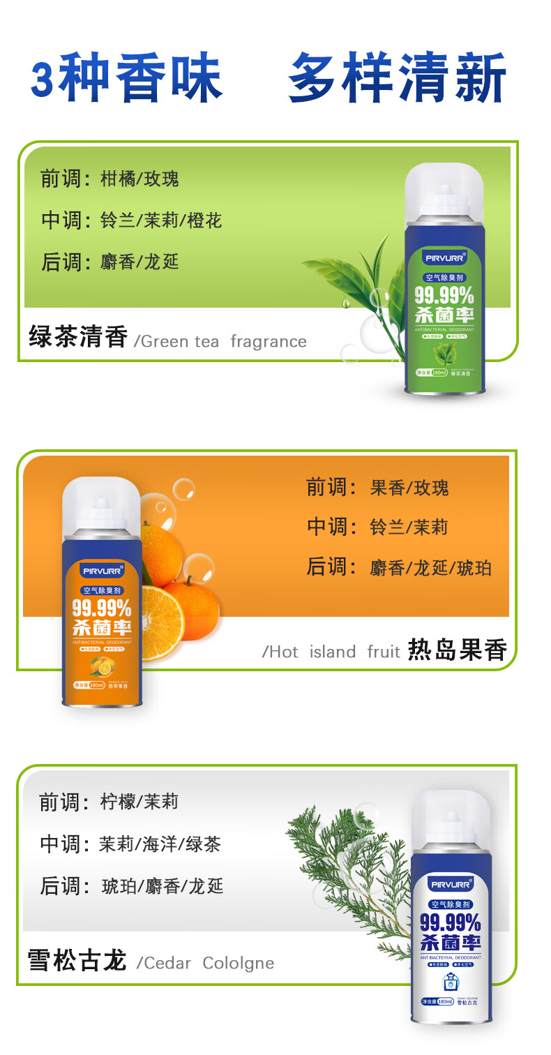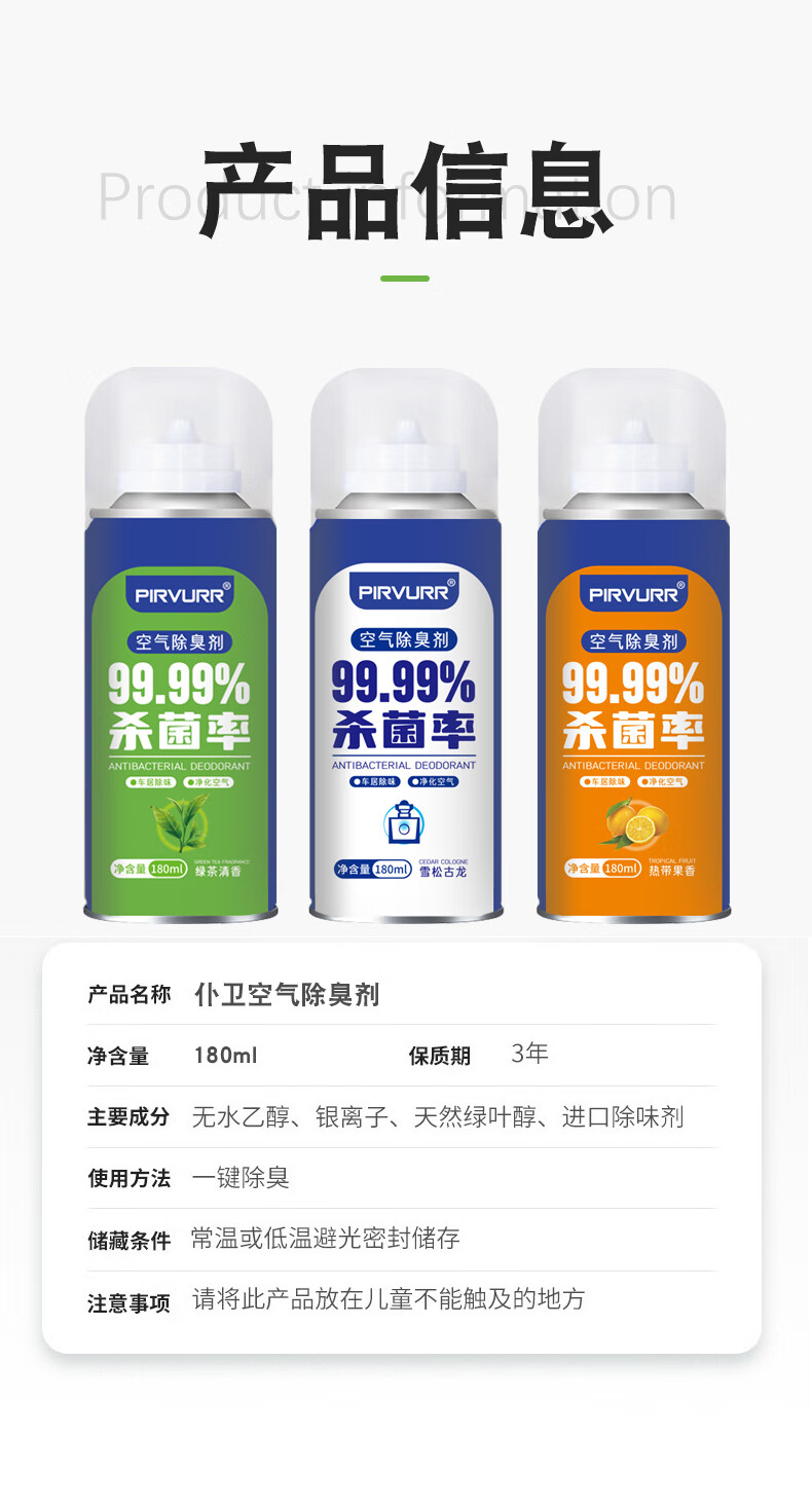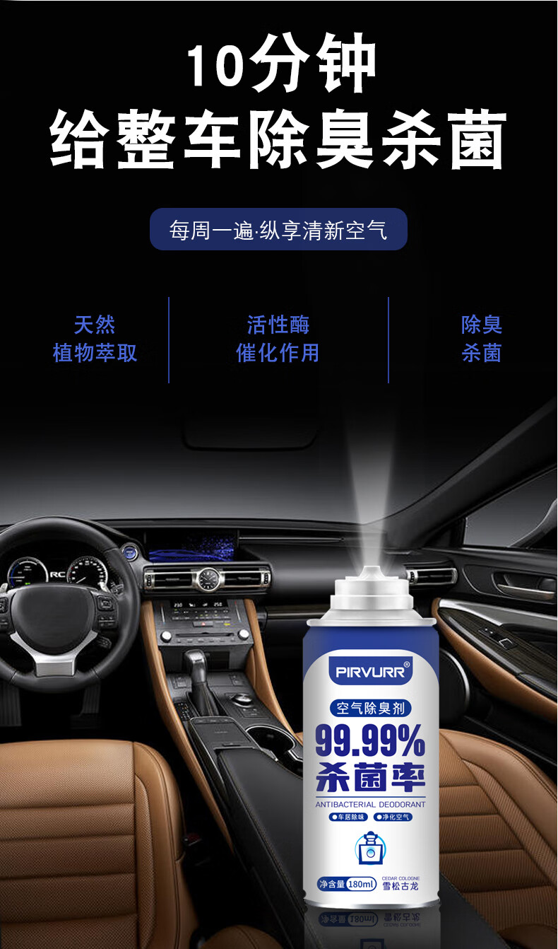 仆卫(PIRVURR)源自美国车内除味喷雾汽车除异味空气清洗剂消毒杀菌喷剂汽车空调清洗剂除臭去味