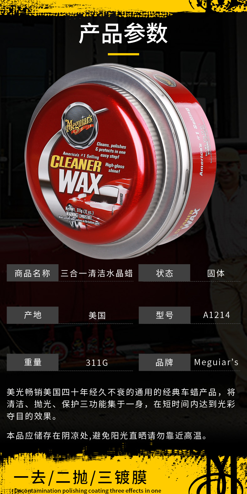汽车蜡三合一清洁水晶划痕修复上光抛光增亮养护黑白车蜡各色通用