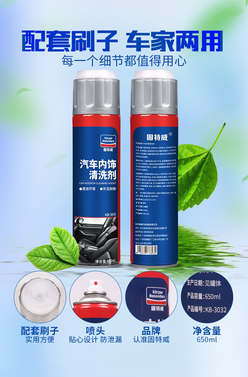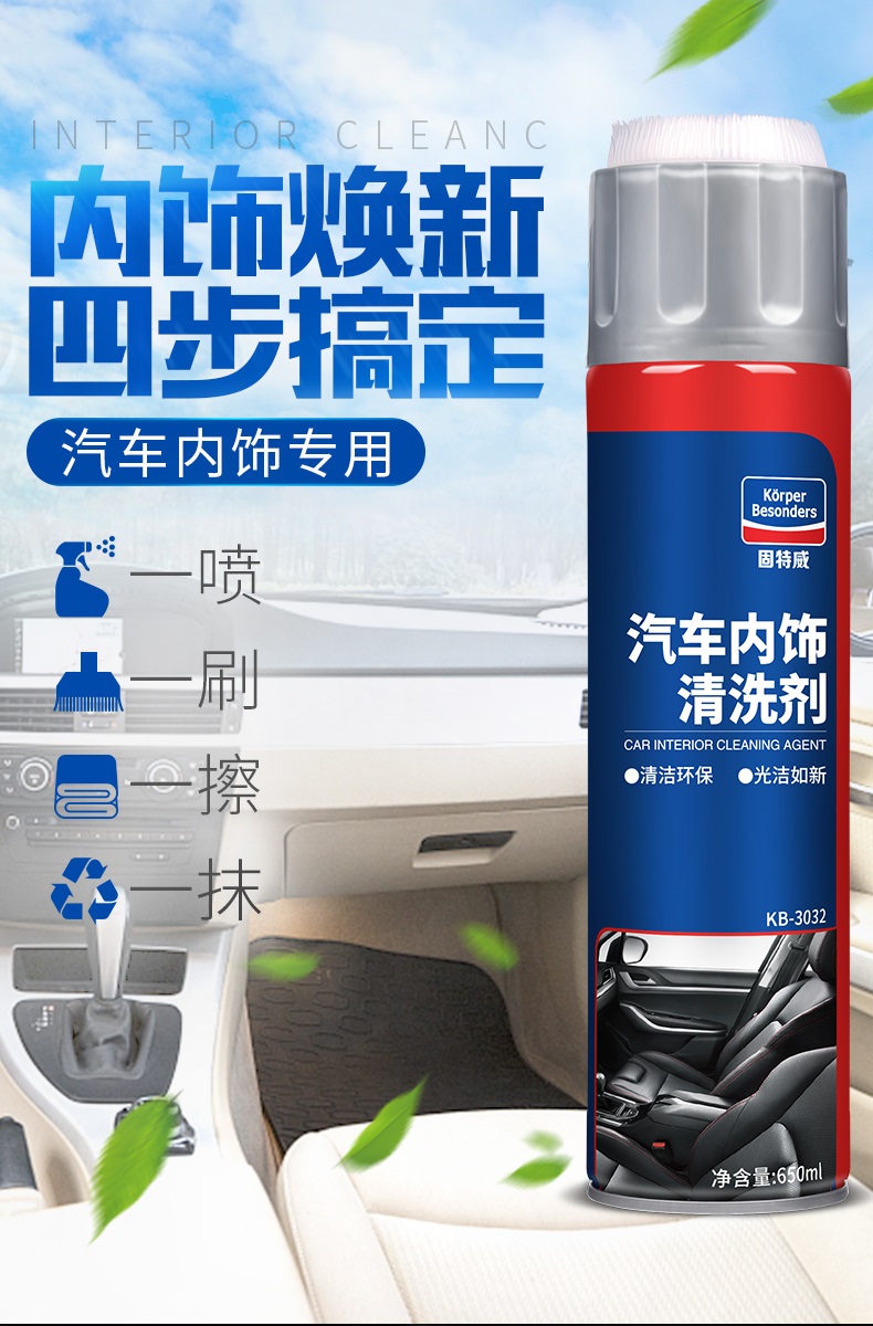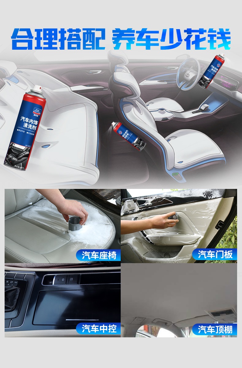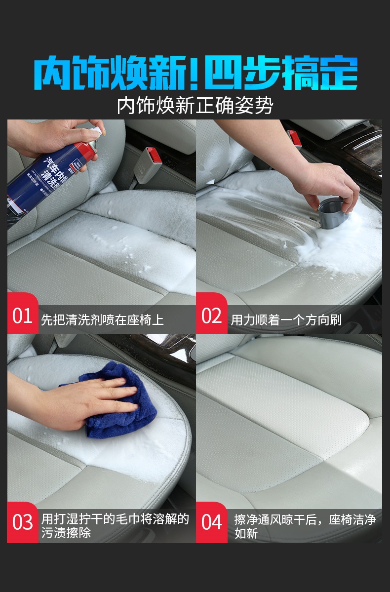 汽车内饰清洗剂洗车泡沫液车内织物顶棚皮革座椅清洁用品650ml*2