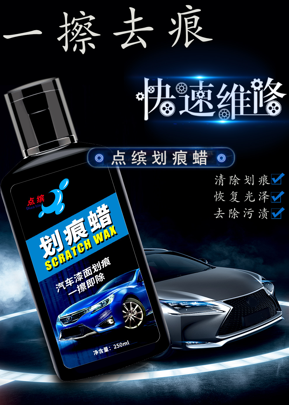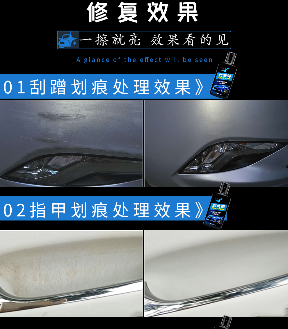 汽车划痕蜡漆面修复补漆强力去污保护蜡汽车保养抛光美容 划痕修复套装