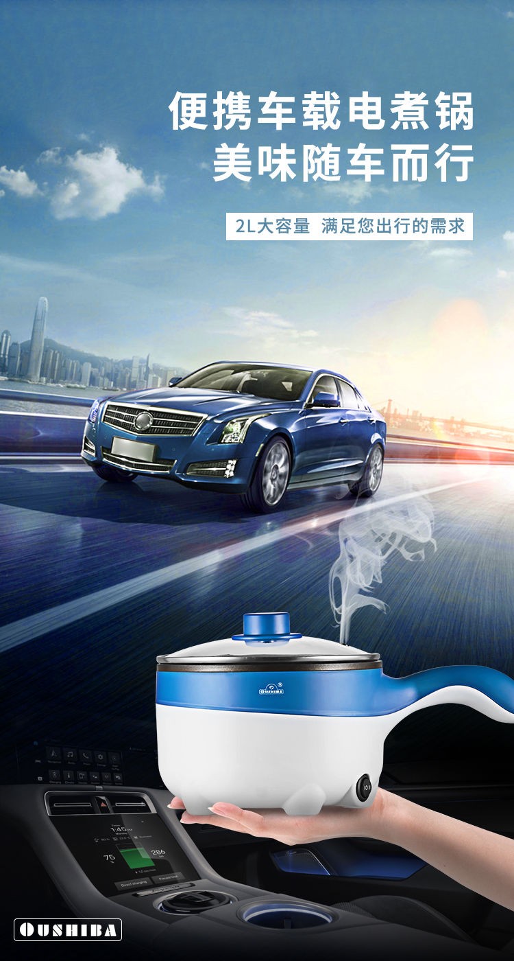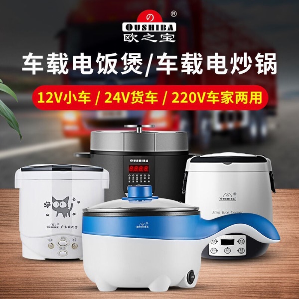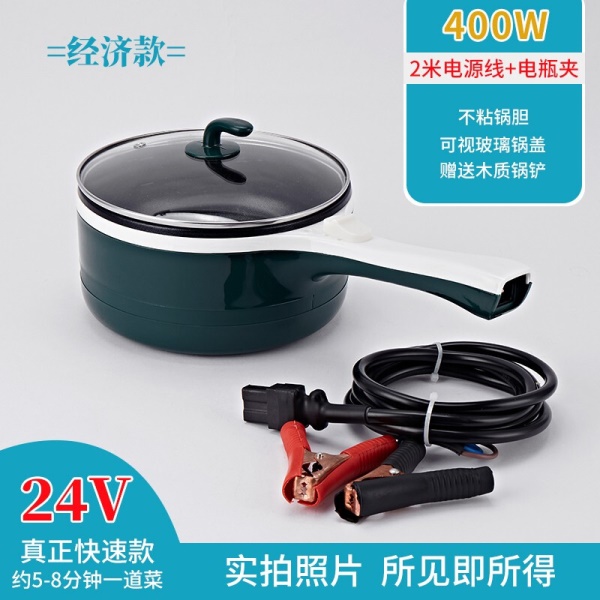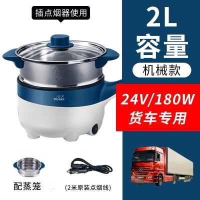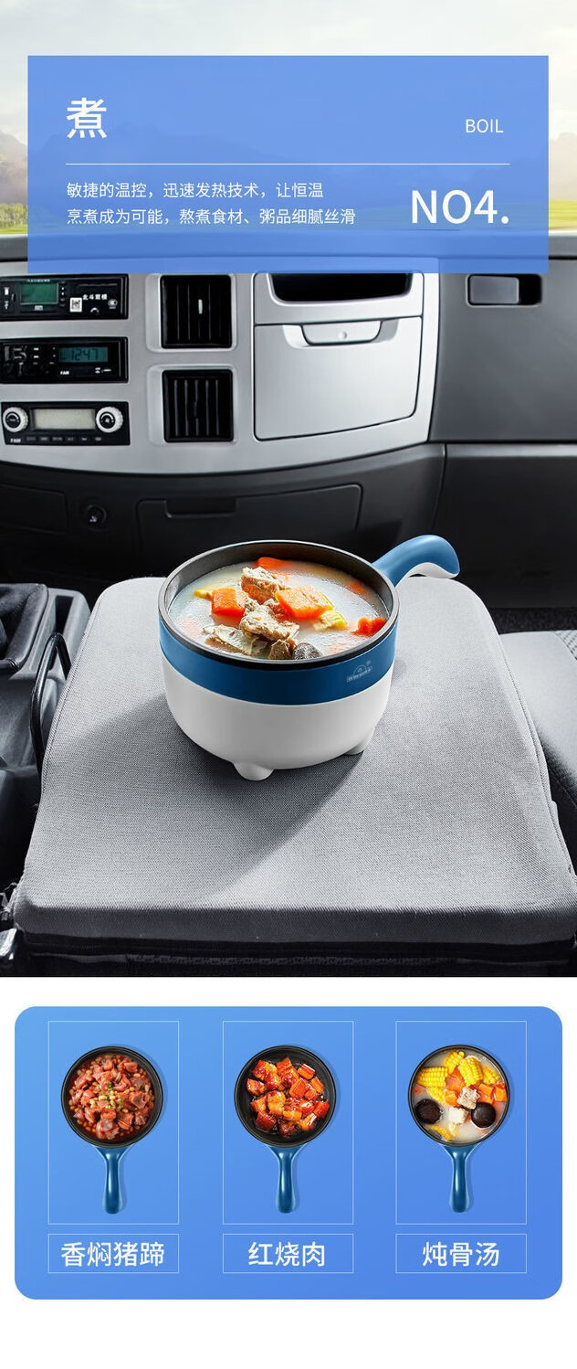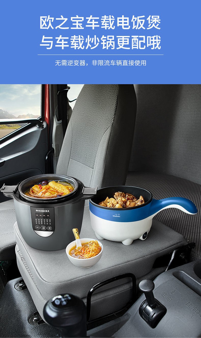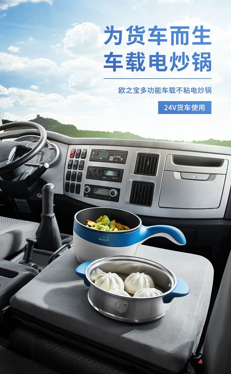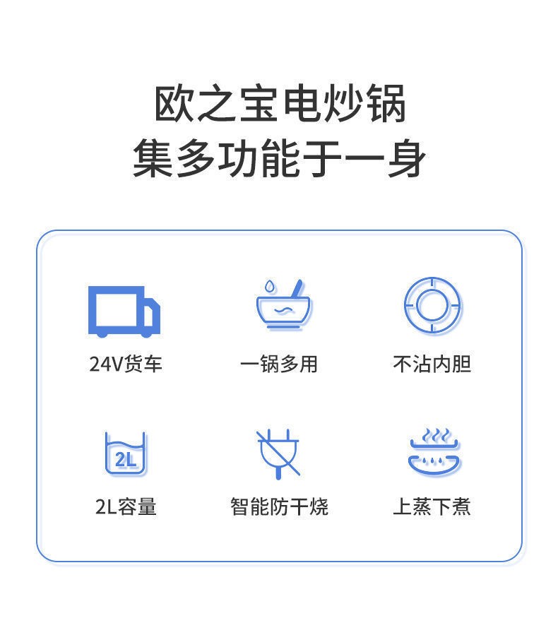 欧之宝车载电炒锅12v24v220v货车专用多功能电煮锅电热锅炒菜不粘锅大货车载电饭煲 24V 180W 深蓝色