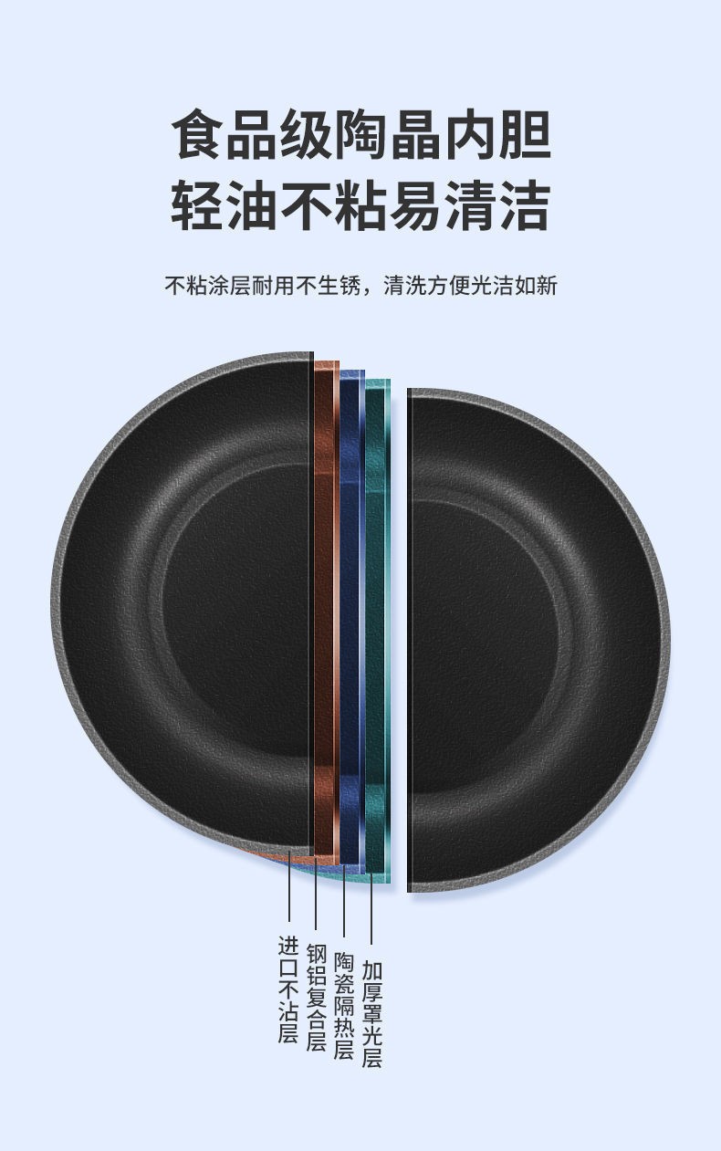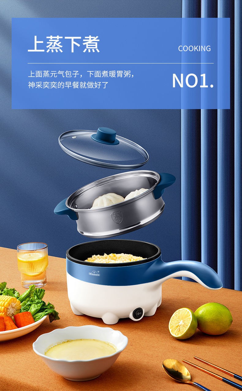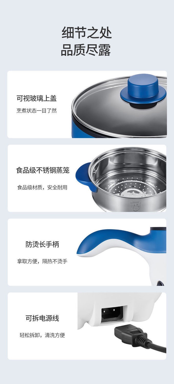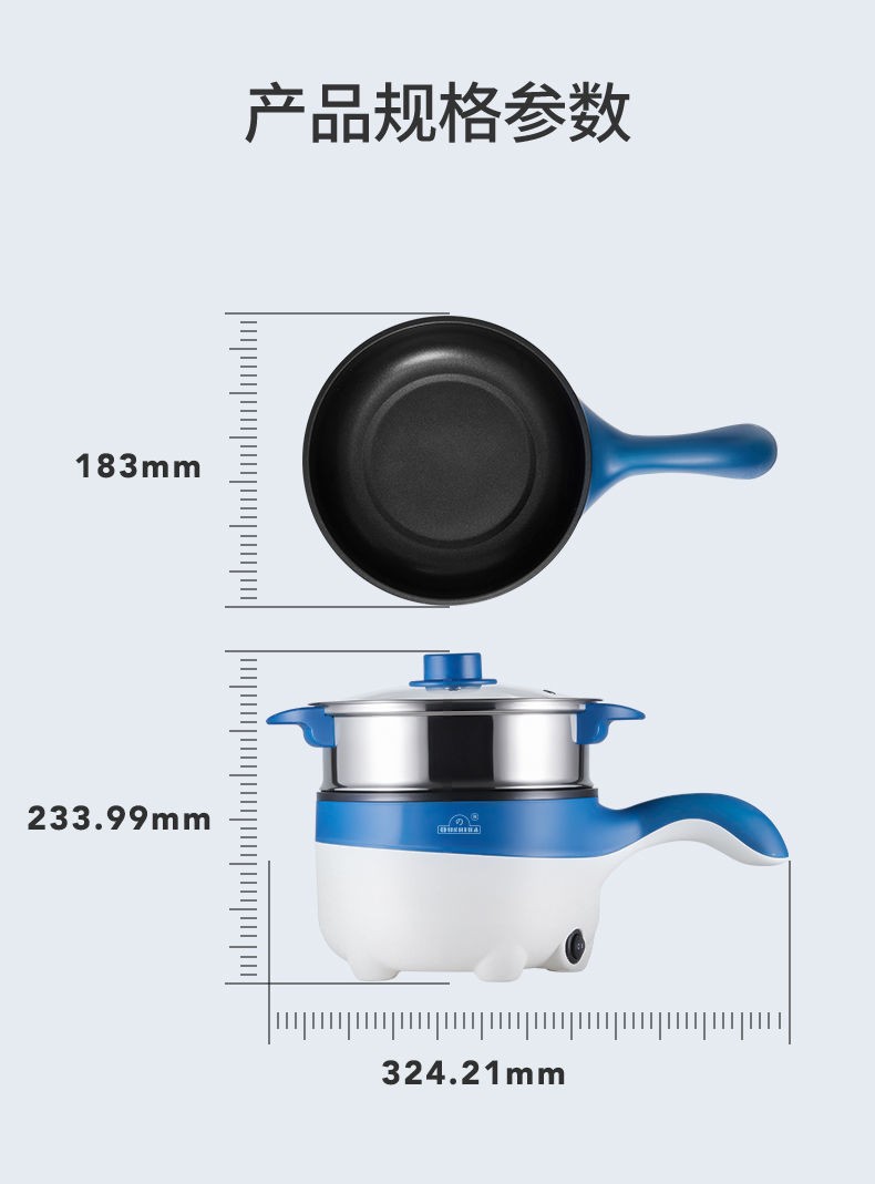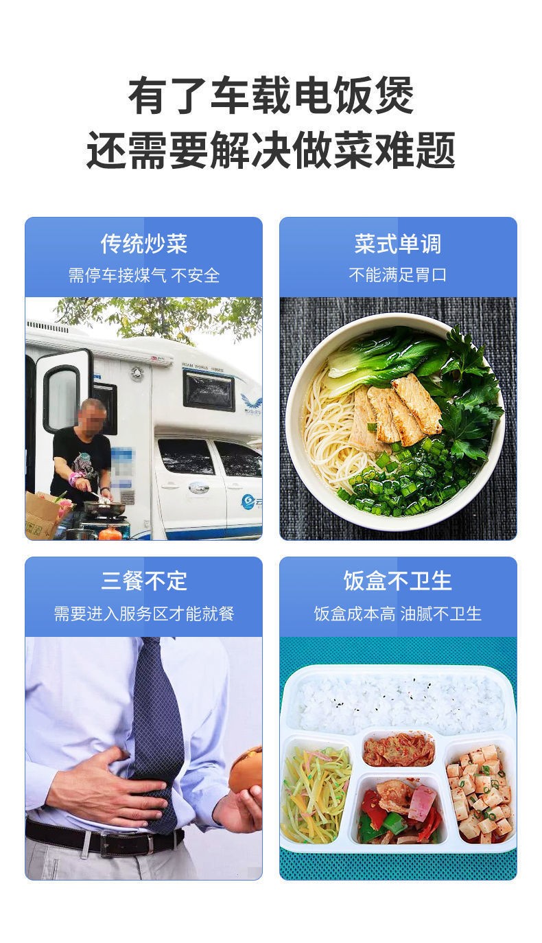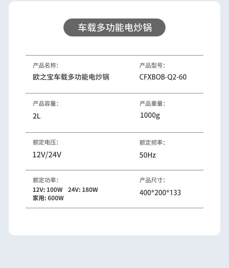 欧之宝车载电炒锅12v24v220v货车专用多功能电煮锅电热锅炒菜不粘锅大货车载电饭煲 24V 180W 深蓝色
