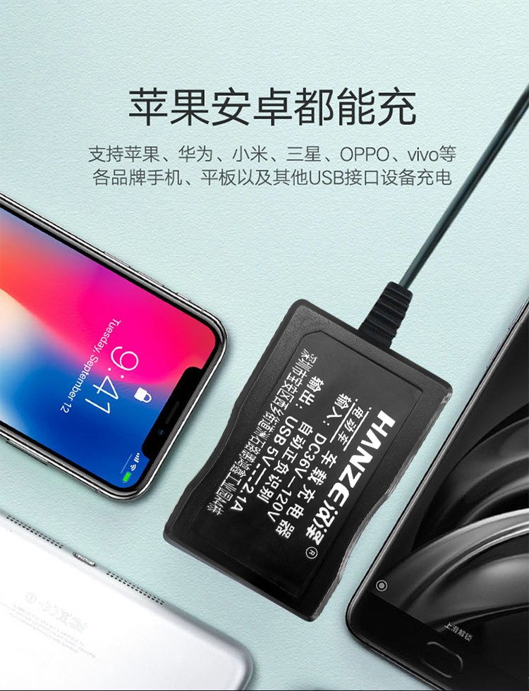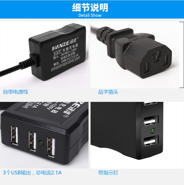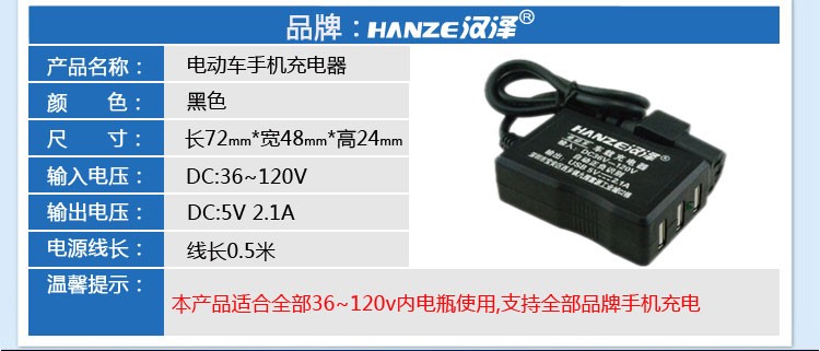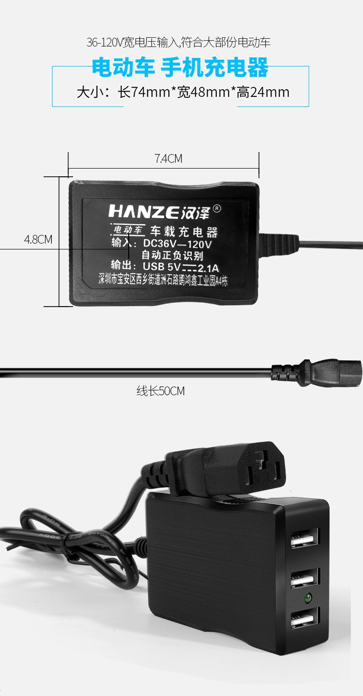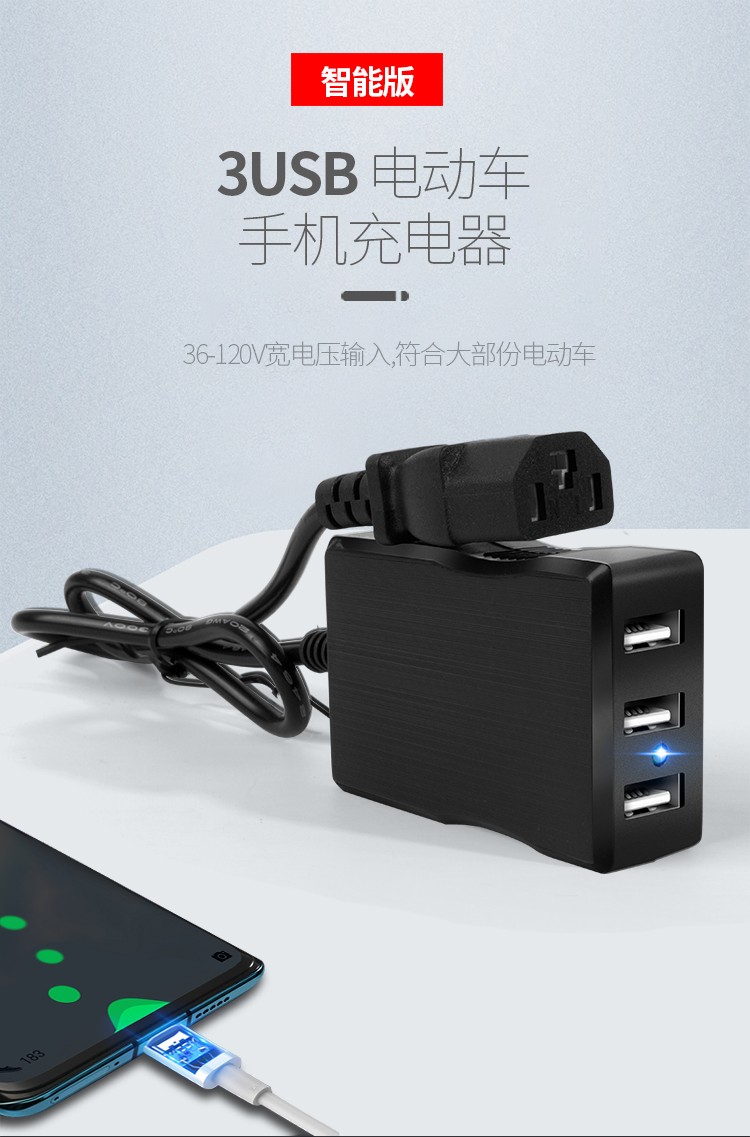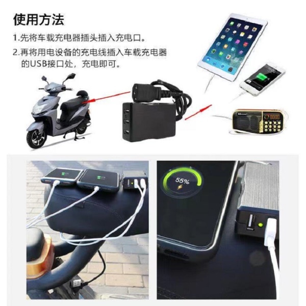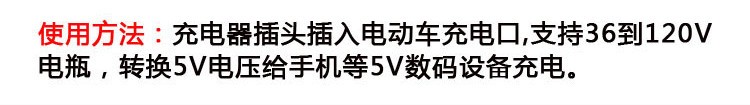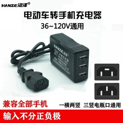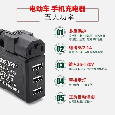 电动车载手机充电器48V60V72V转换5伏USB通用多功能外卖快递户外踏板三轮车快充 一拖二电动车手机充电器