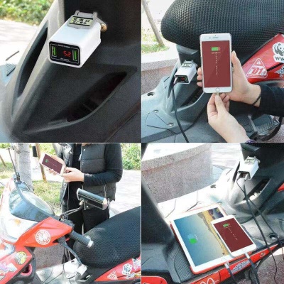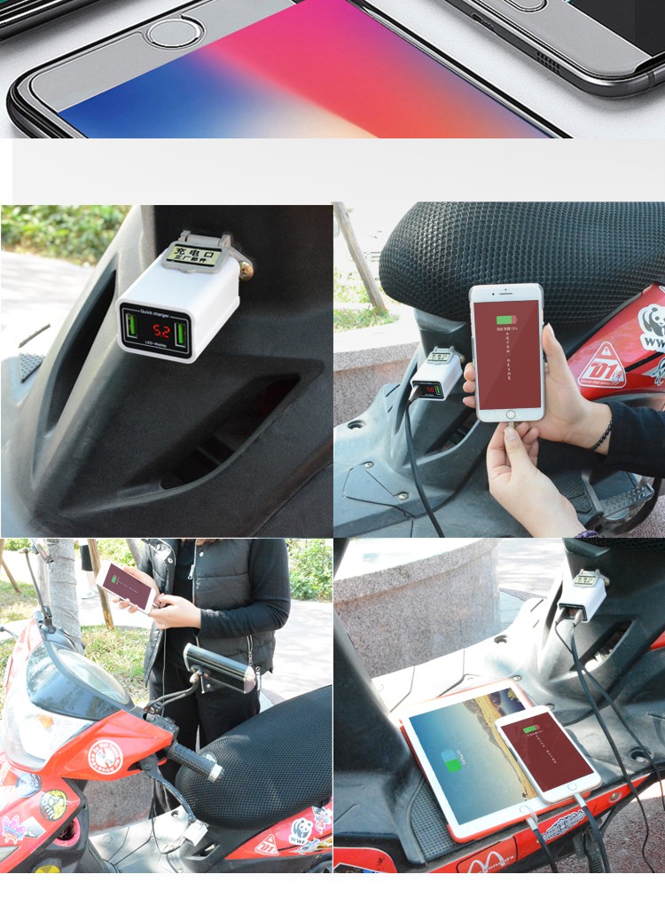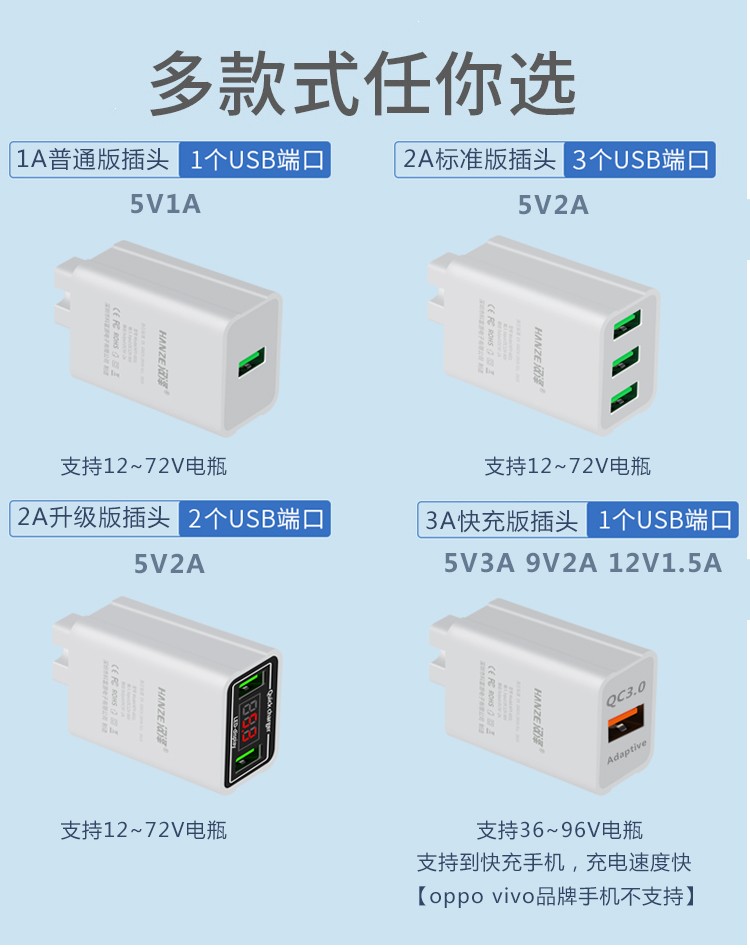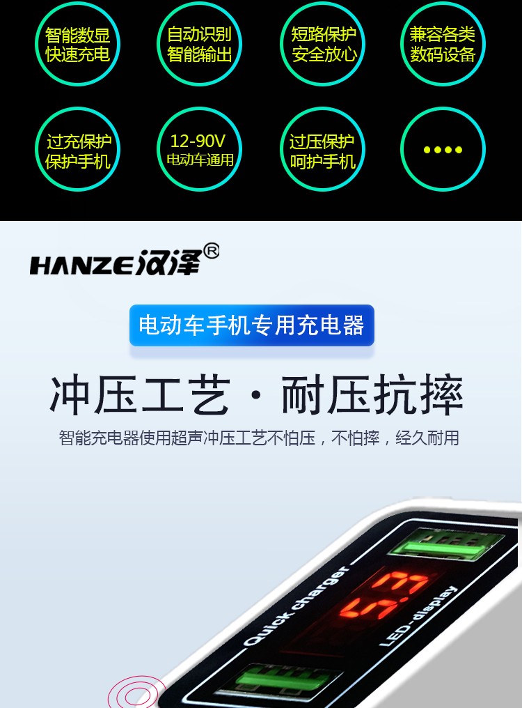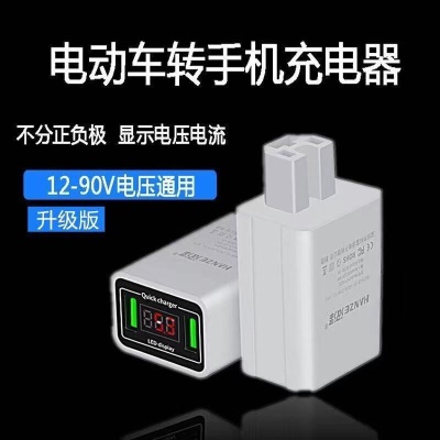 电动车手机转换充电器电池瓶车转接头USB快充12V3648V72V90V踏板三轮通用车载转换器插头 2A升级版电源转换器