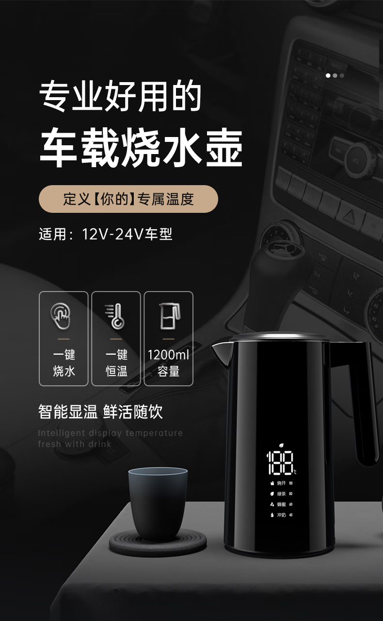 德国酷宝 车载烧水壶 旅行便携式 烧水壶电热水壶车家两用12v24v车载迷你烧水杯电饭煲 智能款12V车用【小汽车
