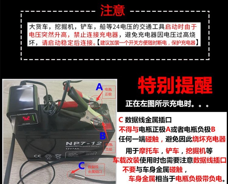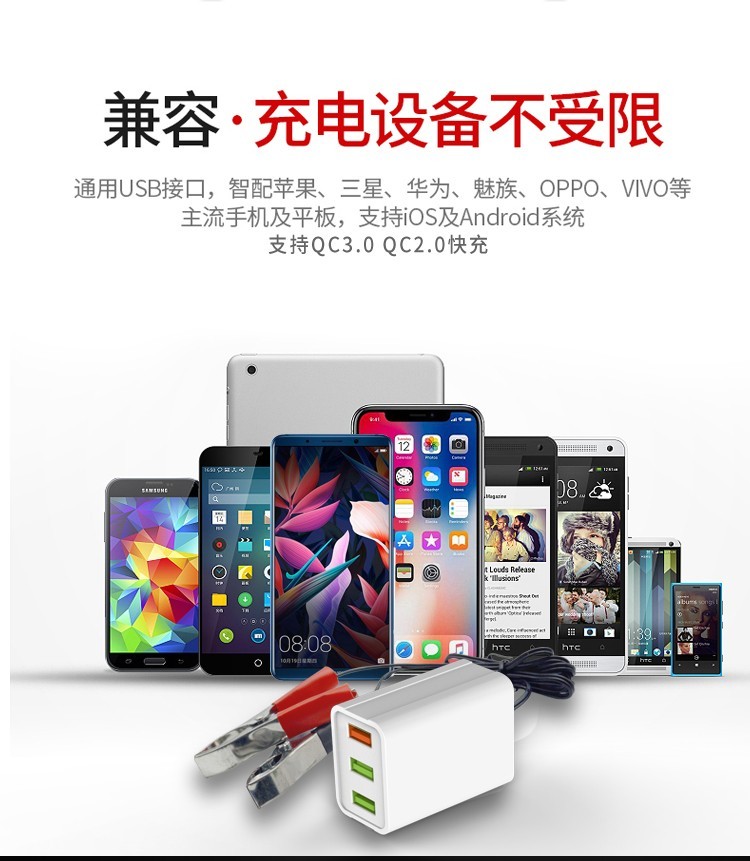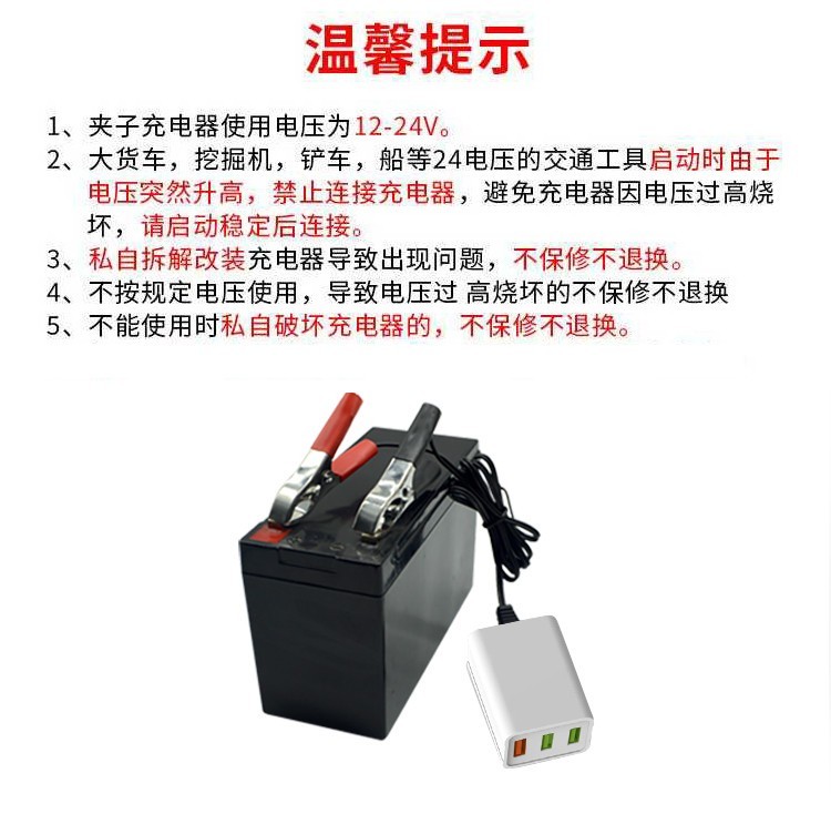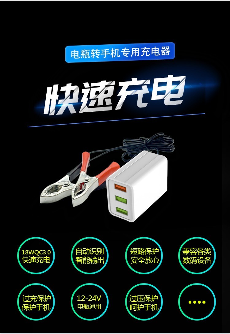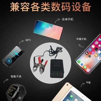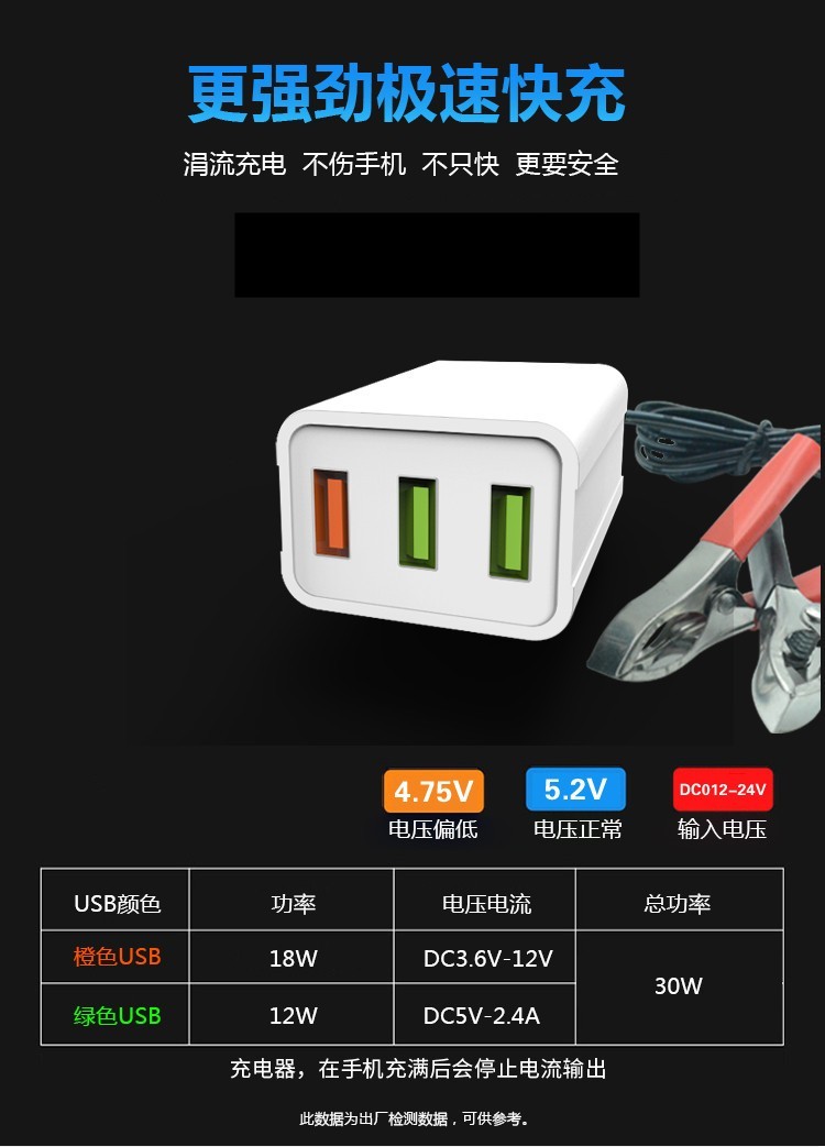 轮船12V24V转5V手机充电器华为VIVO小米OPPO适用多口USB快充车载充电器 30W超级快充电瓶手机充电器
