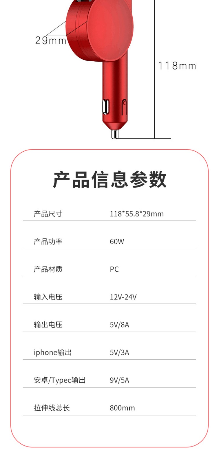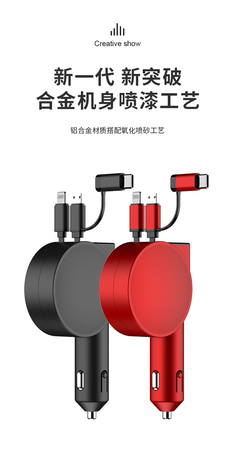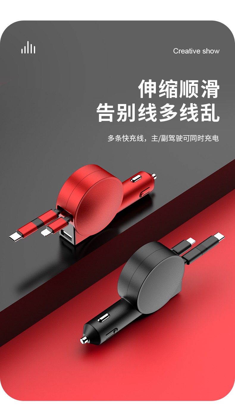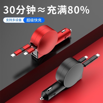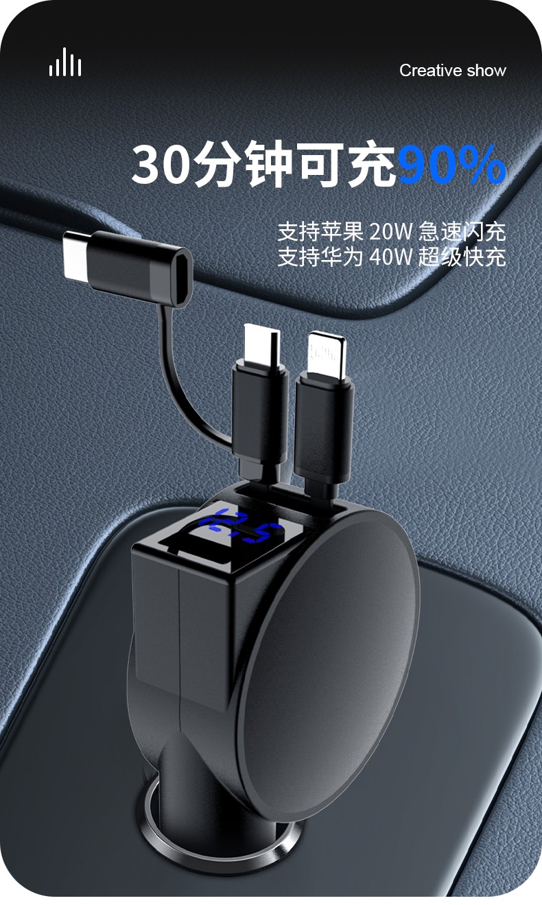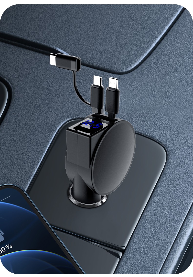 班德斯特(BANDSTER)多功能伸缩60W超级快充车载充电器手机车充苹果华为快充一拖三