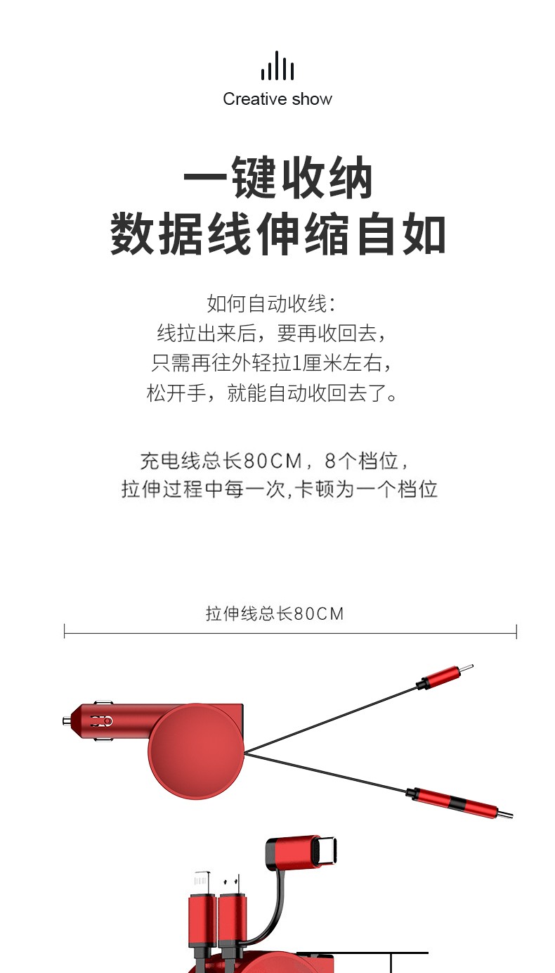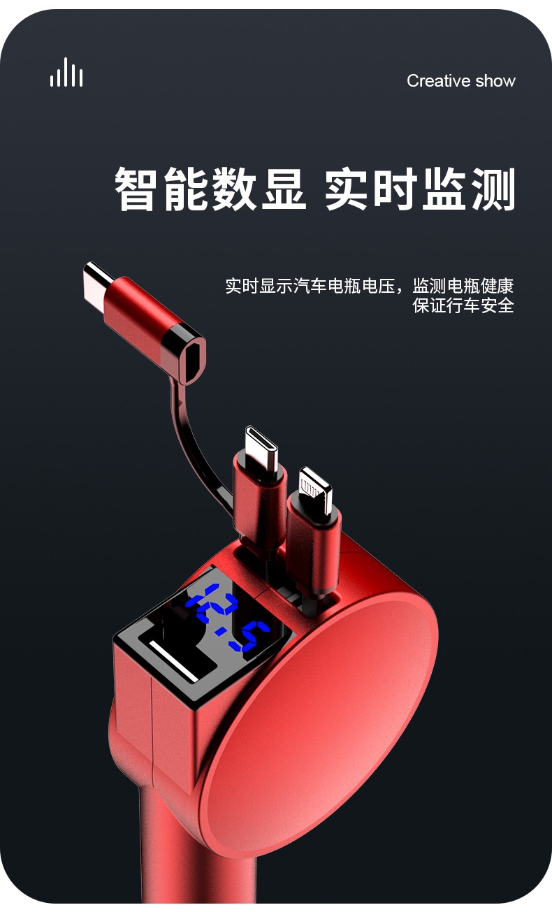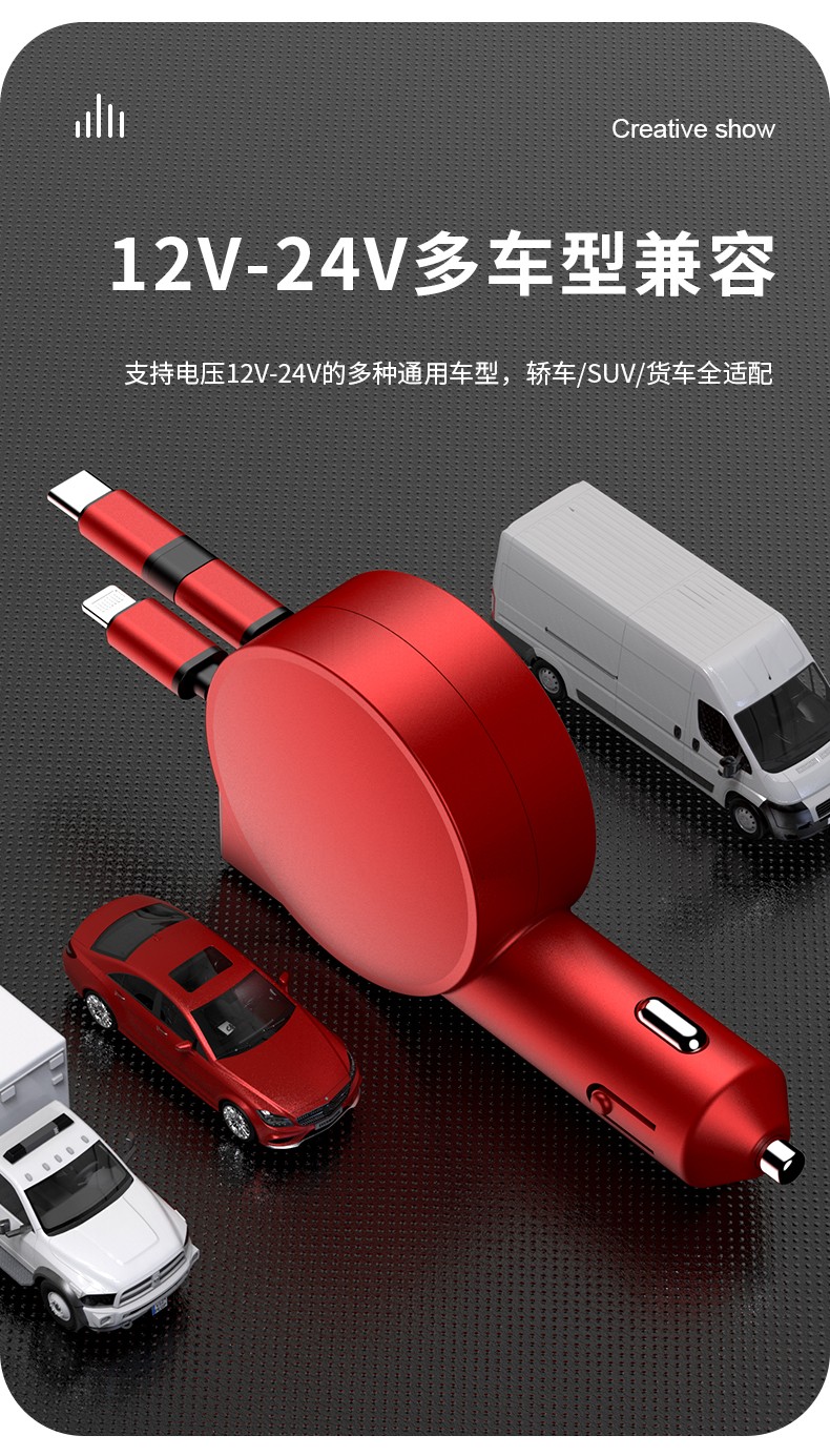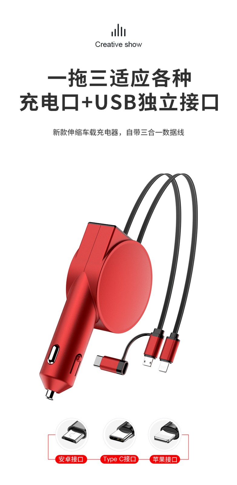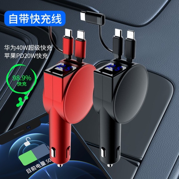 班德斯特(BANDSTER)多功能伸缩60W超级快充车载充电器手机车充苹果华为快充一拖三