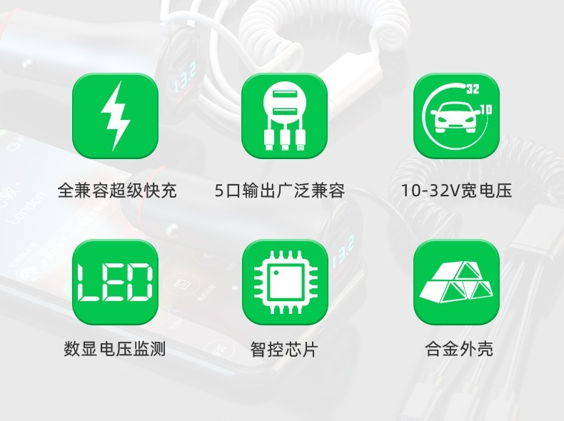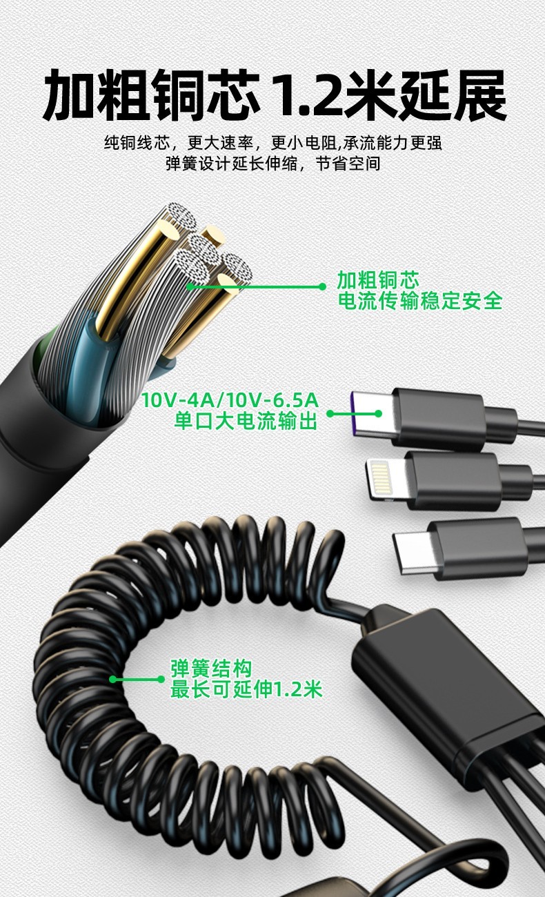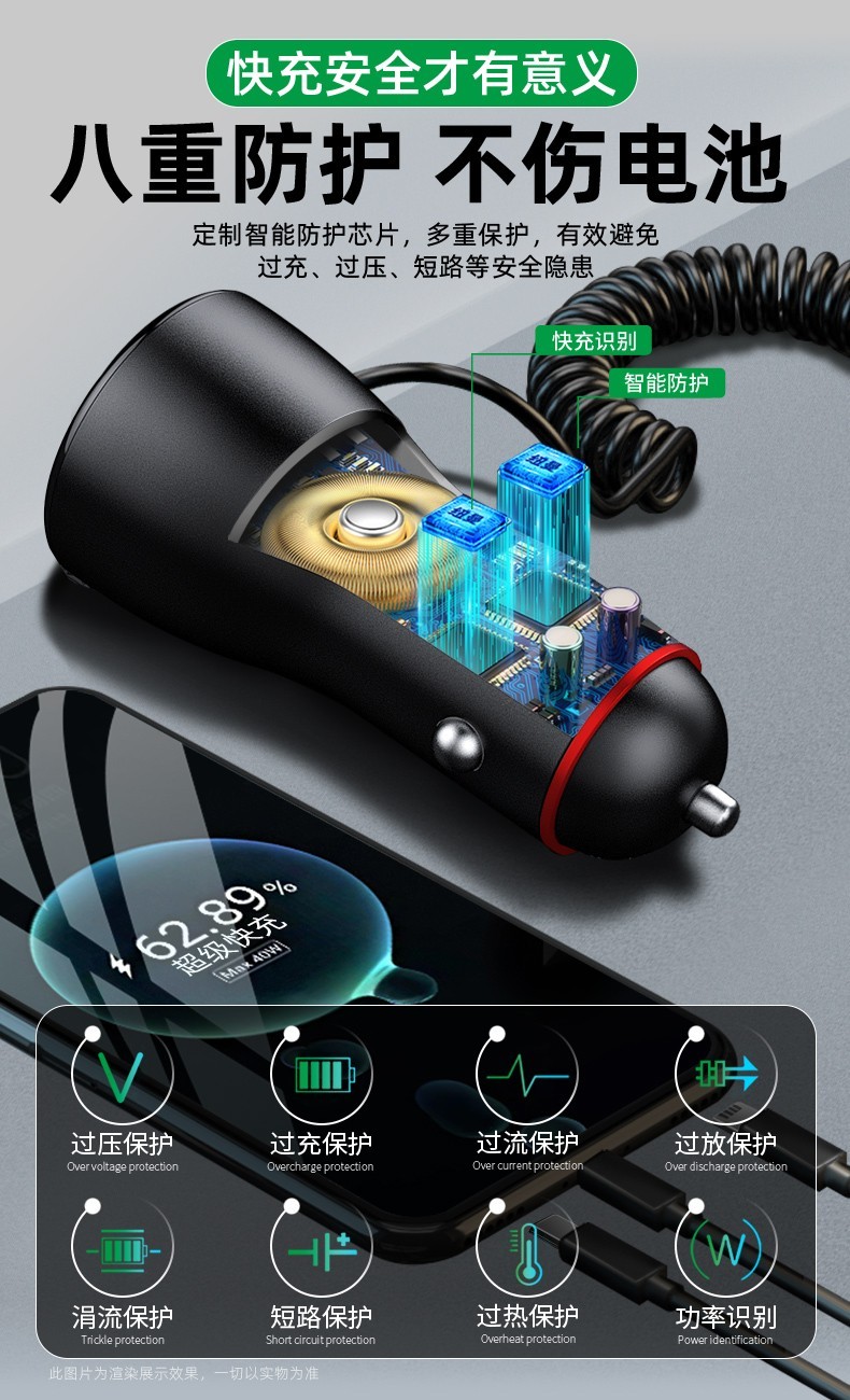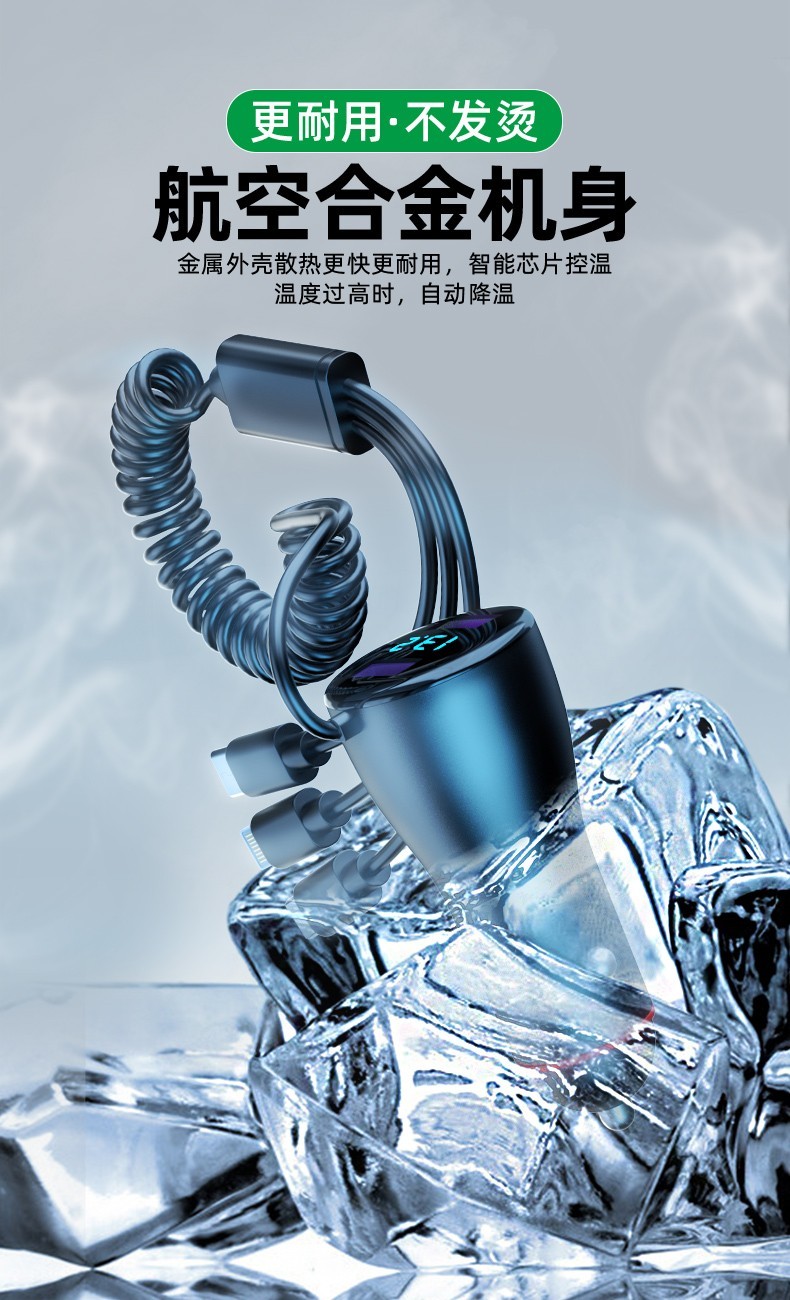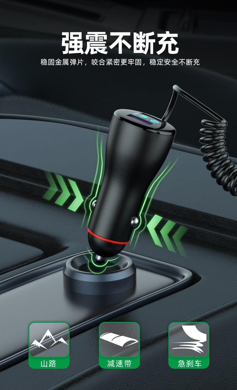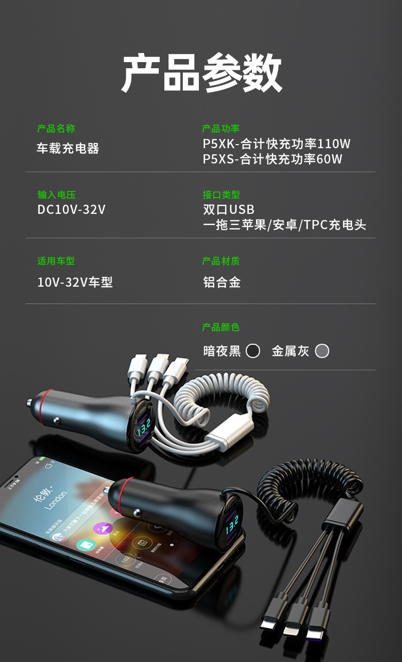 纽曼车载充电器 110W快充电压显示12V24V一拖三快充线扩展点烟器孔转换插头车载充电器快充头