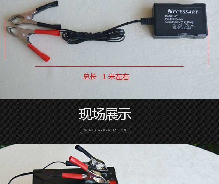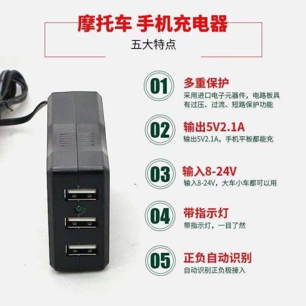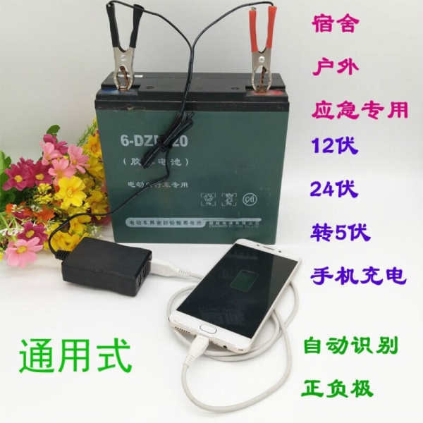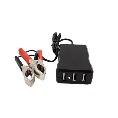 12V24V蓄电池瓶电源给手机充电转换器2.1A汽车摩托车轮船转5V伏3口USB手机充电器 2.1A大夹子(12v24v通用)