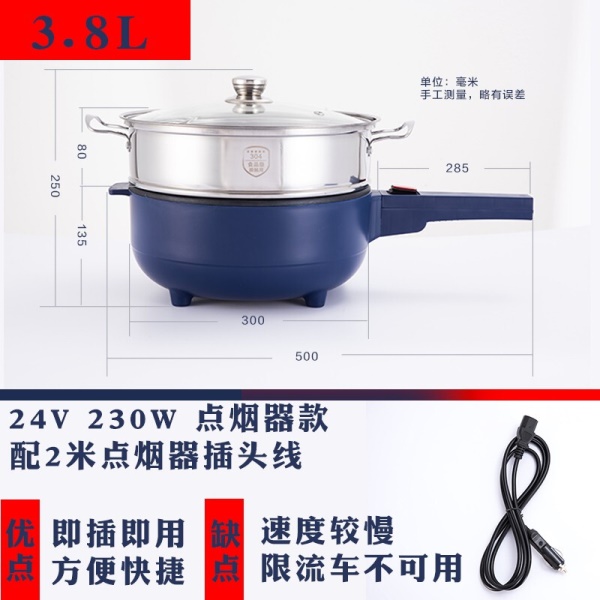 LORDHOT3.8升大货车载电炒锅电火锅货车司机用品24V伏炒菜锅电热锅车家两用大功率 【2.0L】24伏货车用 180瓦