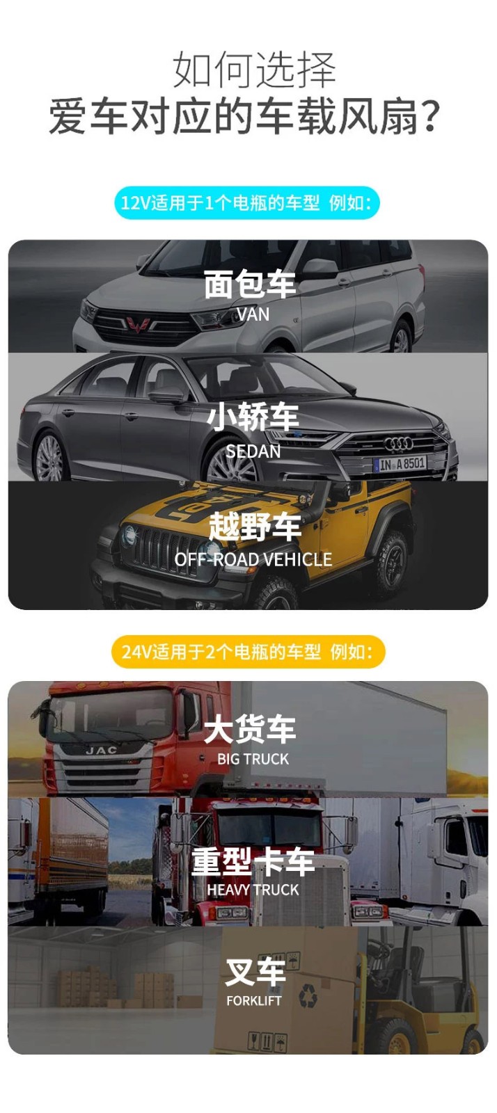 班德斯特(BANDSTER)车载风扇车用强大风力大货车12v24v通用制冷面包车双头静音电风扇