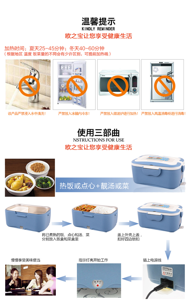 欧之宝车载保温加热饭盒车载电饭煲 车用电热饭盒