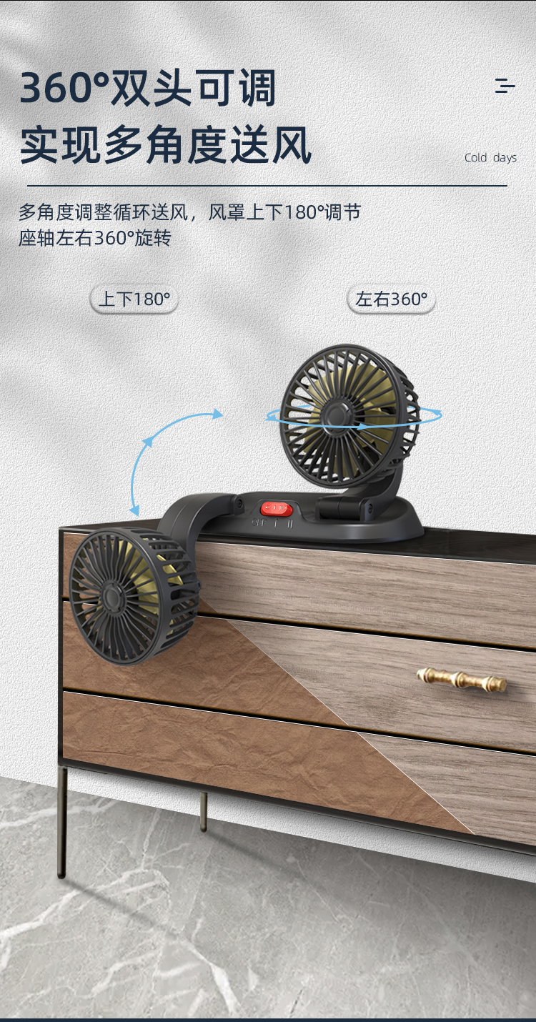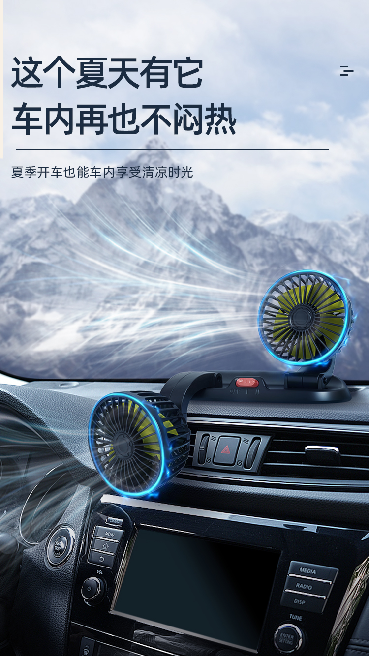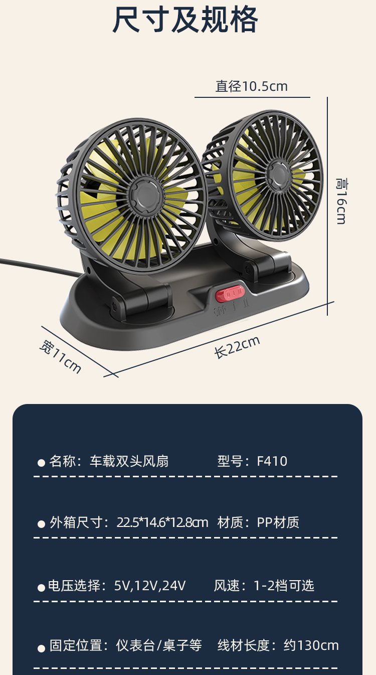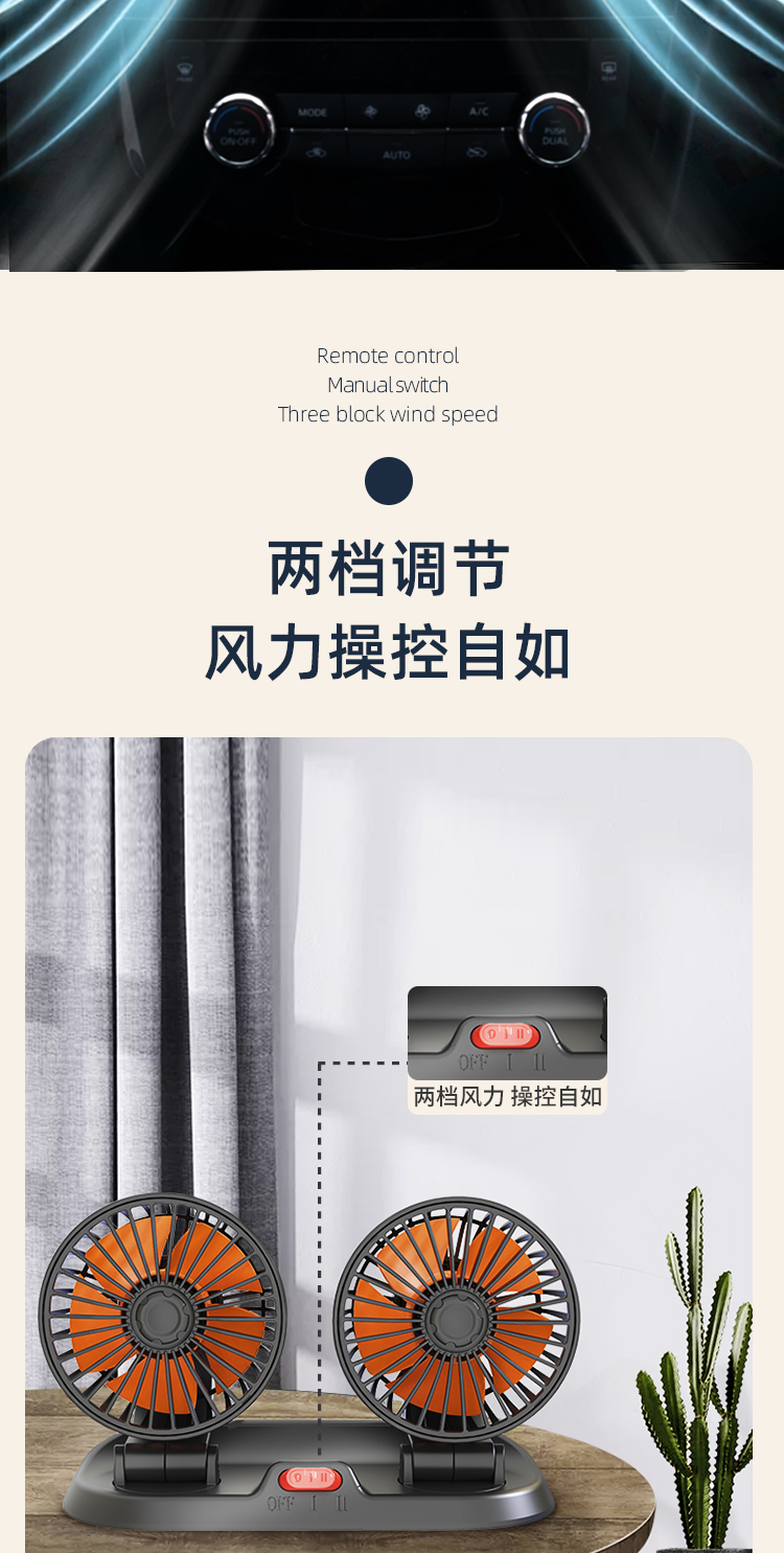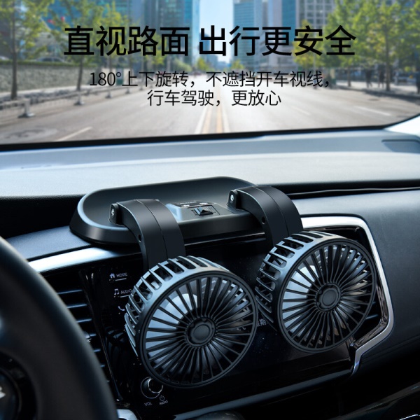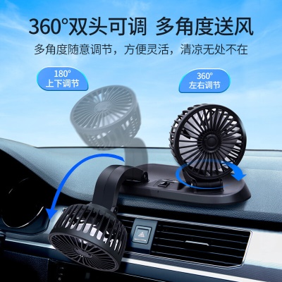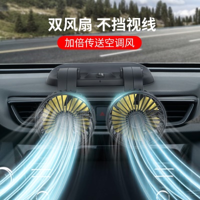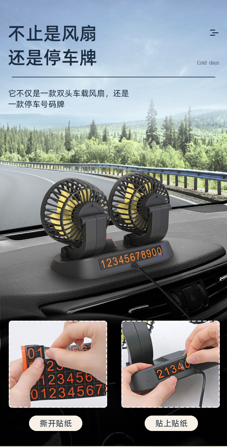 车载风扇汽车停车号码牌12v24v大货车轿车卡车通用车内双头电风扇大风力功率静音制冷可摇头旋转 黑色【双头大风力+停车号码牌】