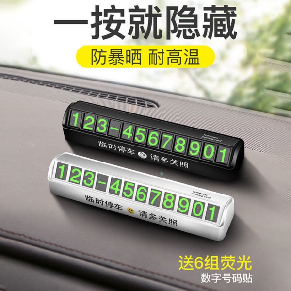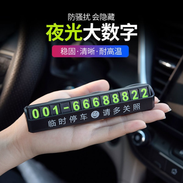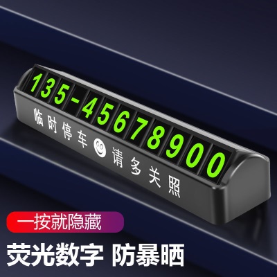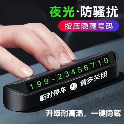 汽车临时停车牌车用挪车电话号码牌防滑车载移车夜光电话牌内饰用品摆件 升级黑+4组数字【不带文字】