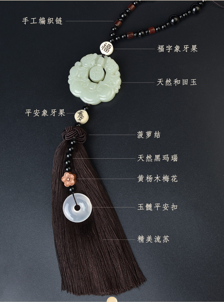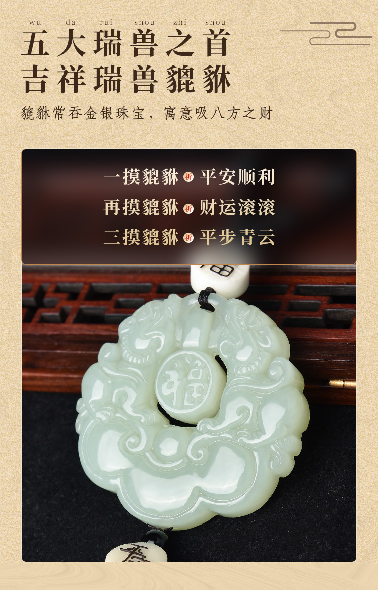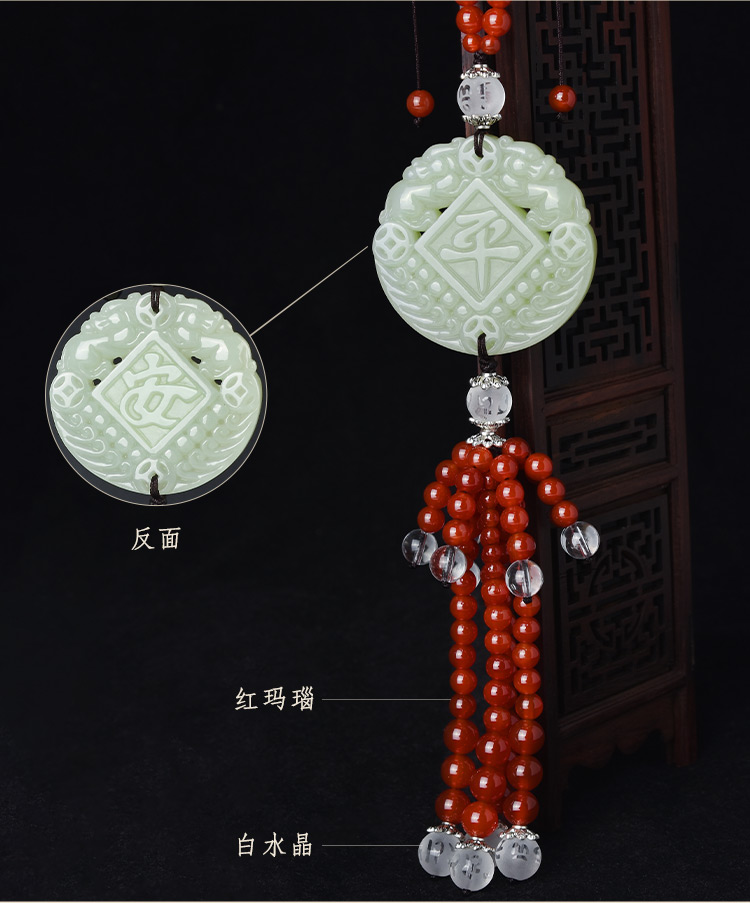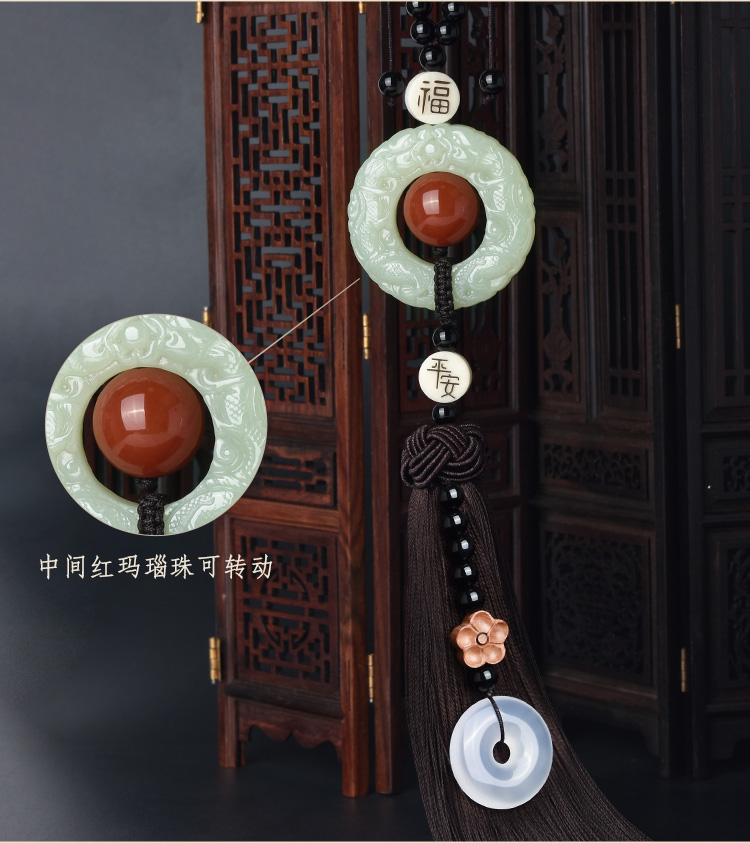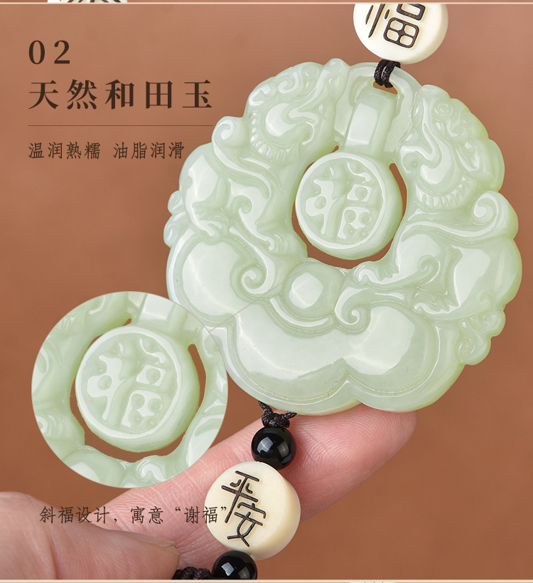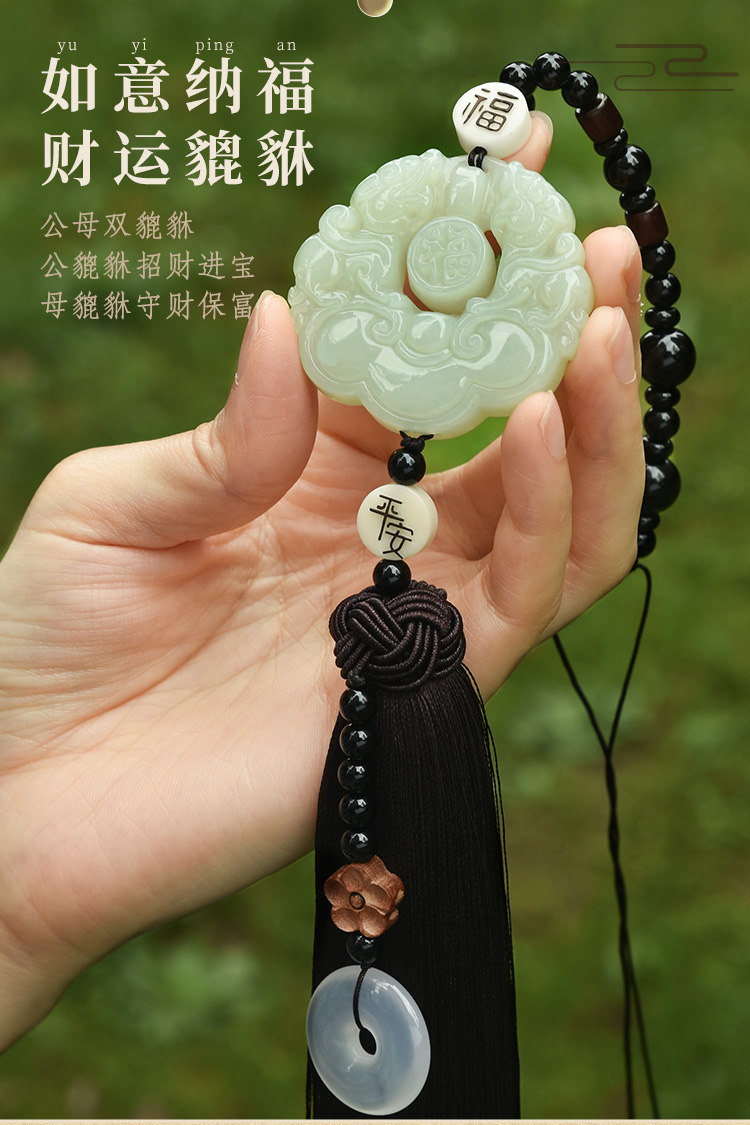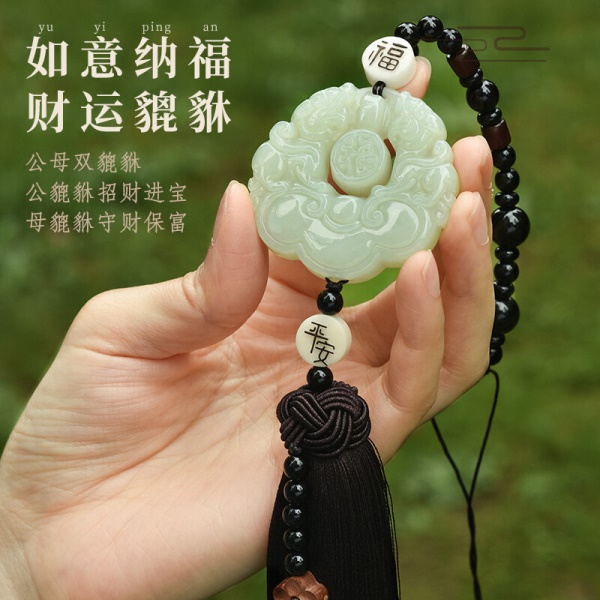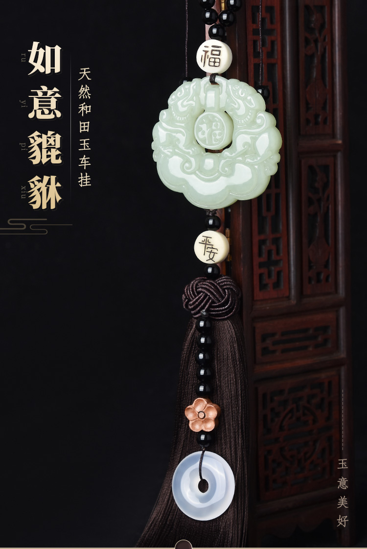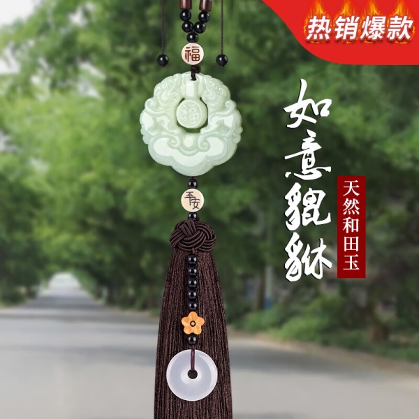吉玺 和田玉貔貅汽车挂件高档车内饰品后视镜吊坠男女平安符车载挂饰