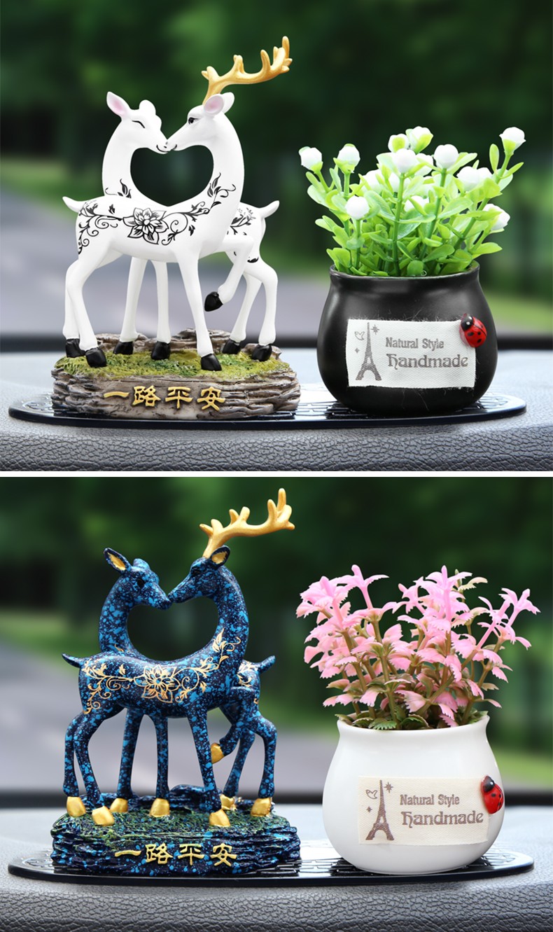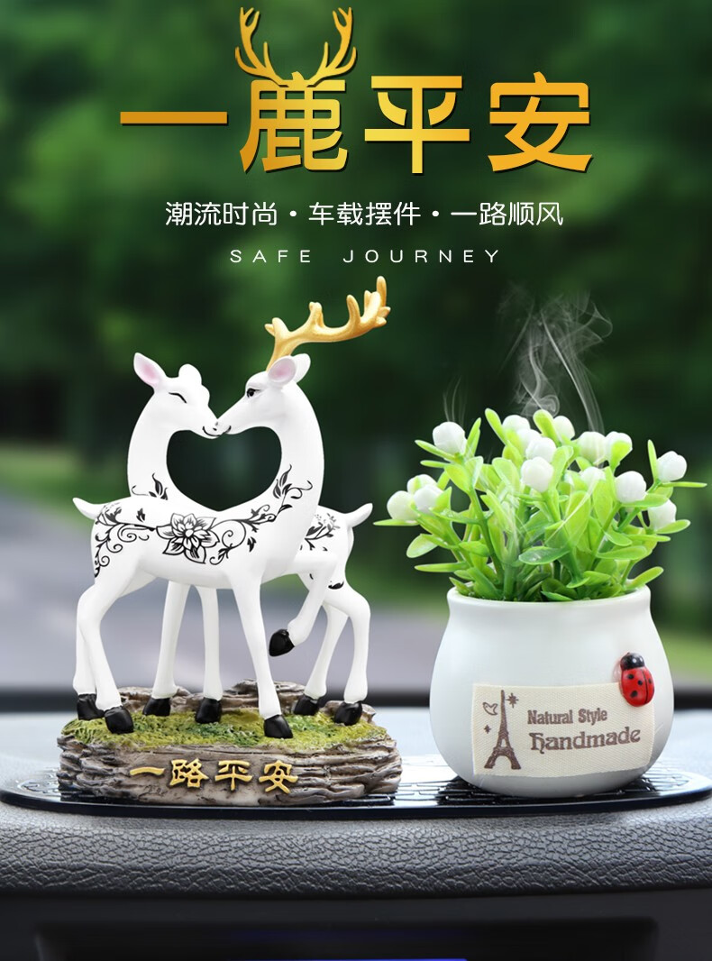 璐艺恺 汽车摆件一路平安鹿车载香水新款创意可爱公仔鹿车载装饰中控台香薰车内饰品男女摆设车上用品