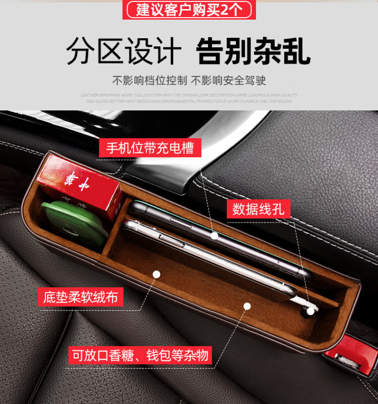 汽车装饰用品大全实用座椅夹缝收纳盒车内无线充电车载缝隙储物盒