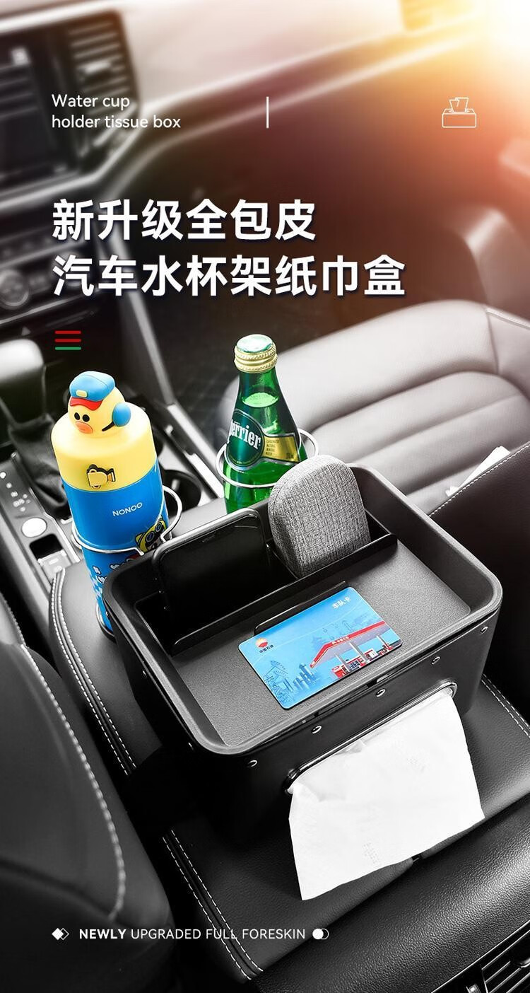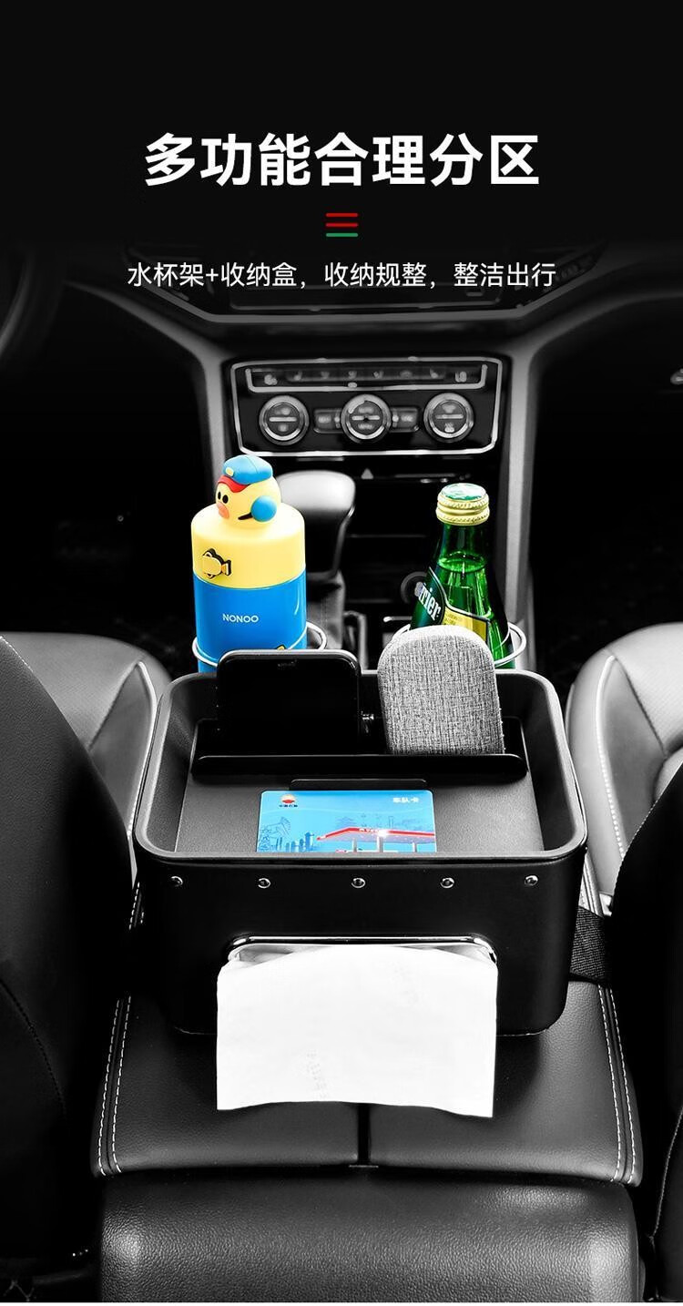 齐选车载扶手箱收纳盒车用多功能水杯架纸巾盒置物储物箱汽车内饰用品