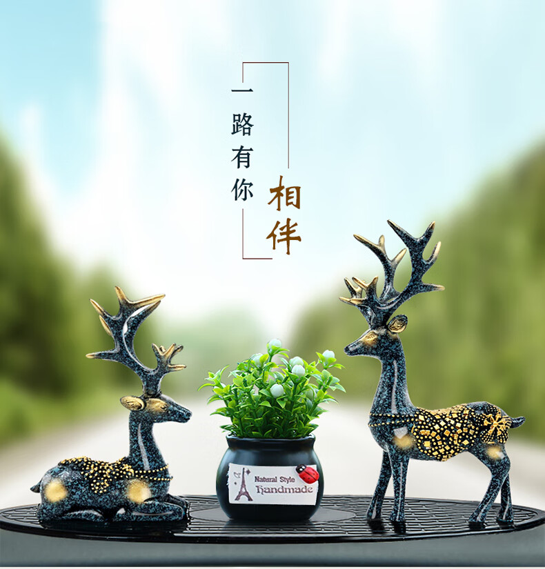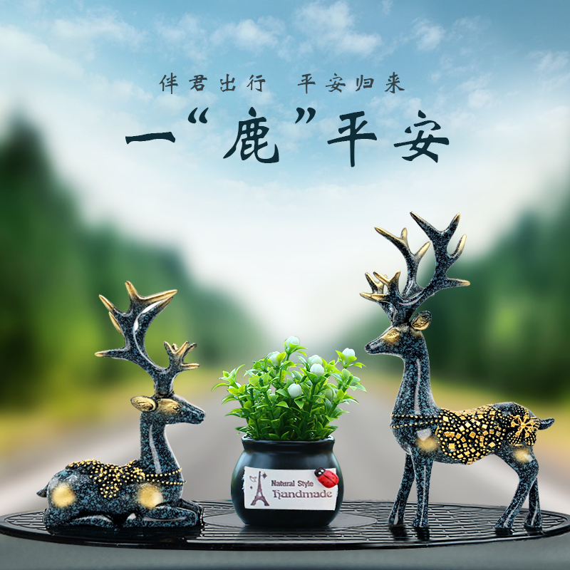 汽车摆件一鹿平安汽车摆件新款小鹿车载车内车上摆件一路平安汽车用品车内饰品