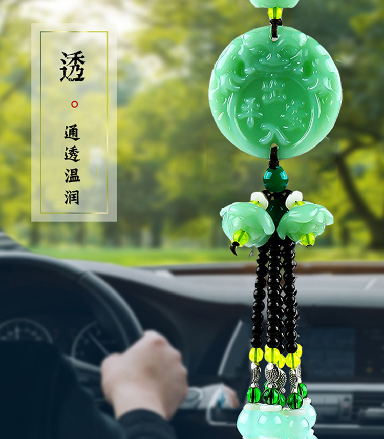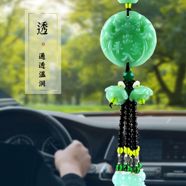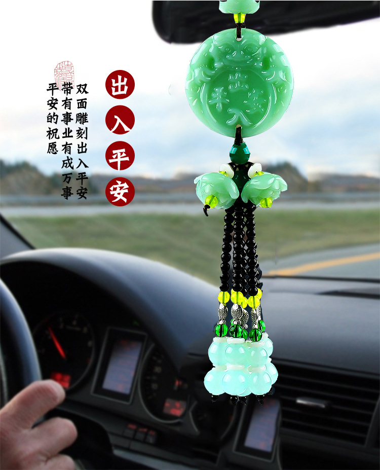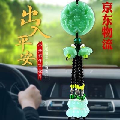 柬渝 汽车挂件车内饰品挂饰男士汽车高档吊饰女士车载吊坠摆件创意车载后视镜装饰 出入保平安符用品礼盒装 双面-出入平安(莲花款)