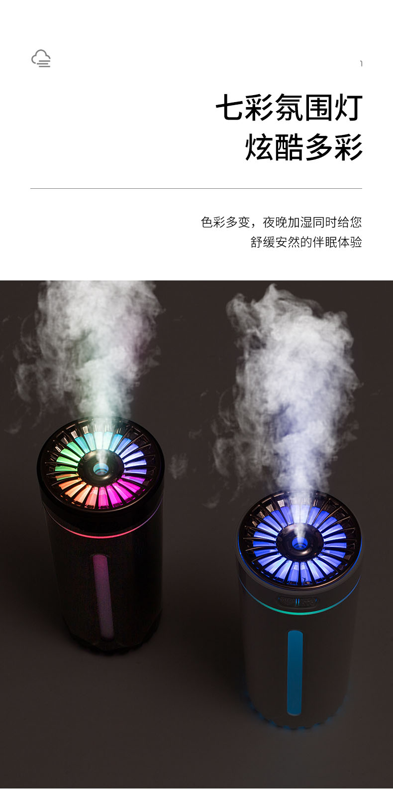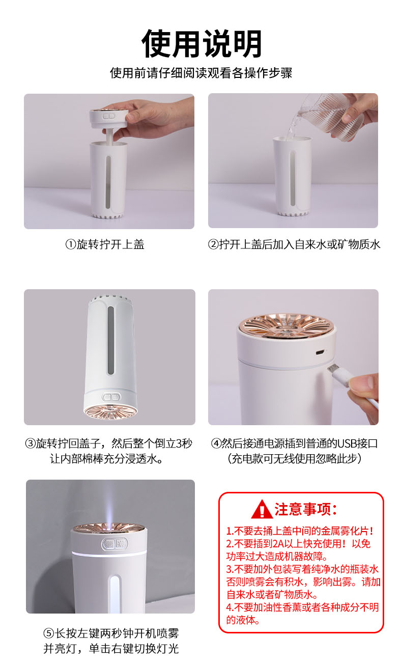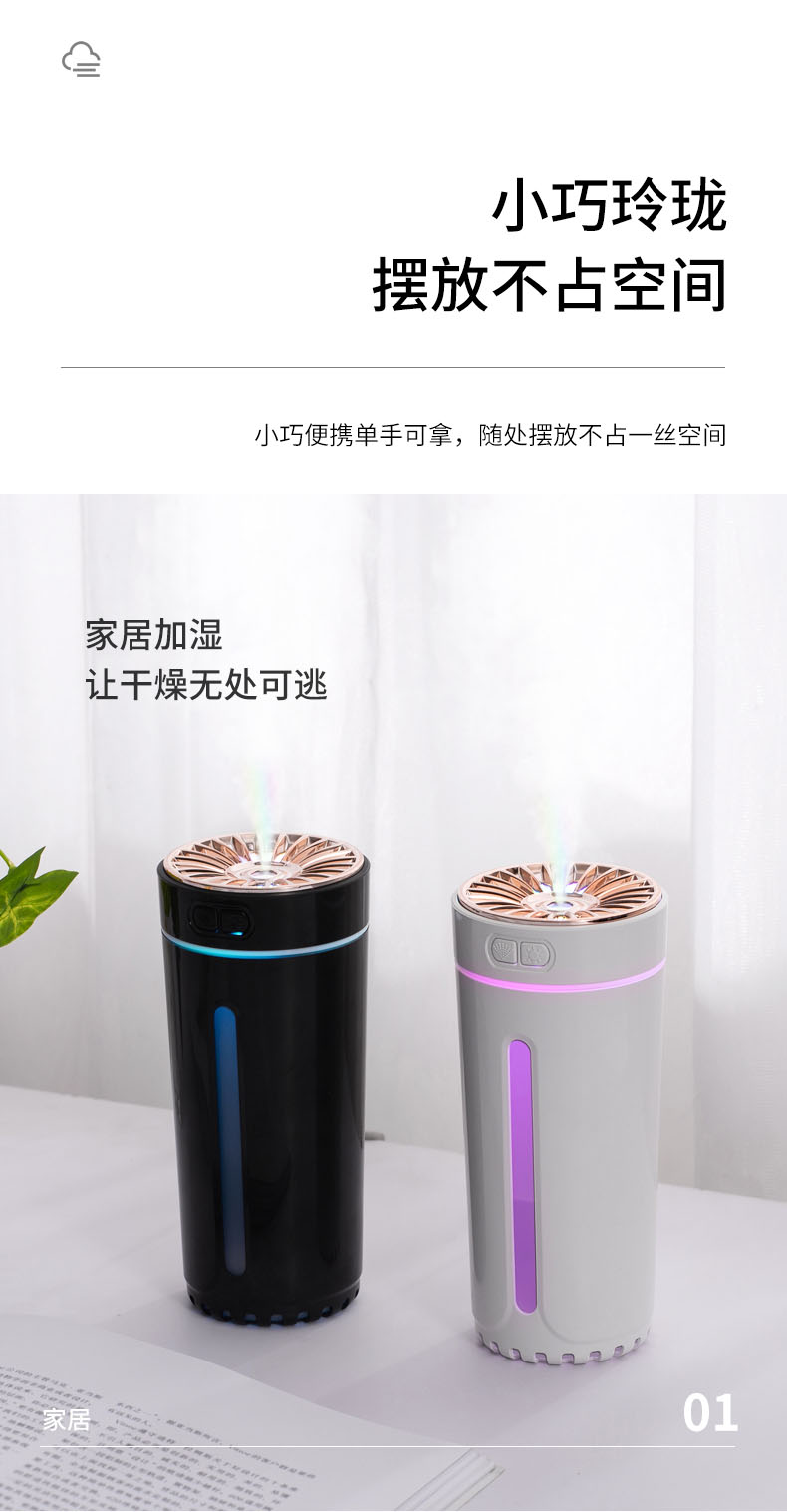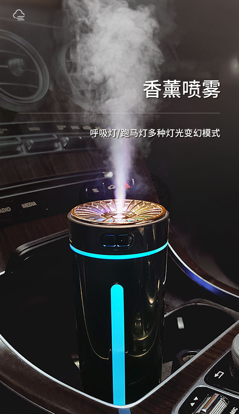 齐选车载香水加湿器汽车内饰用品氛围灯摆件喷雾器除味净化器车家两用