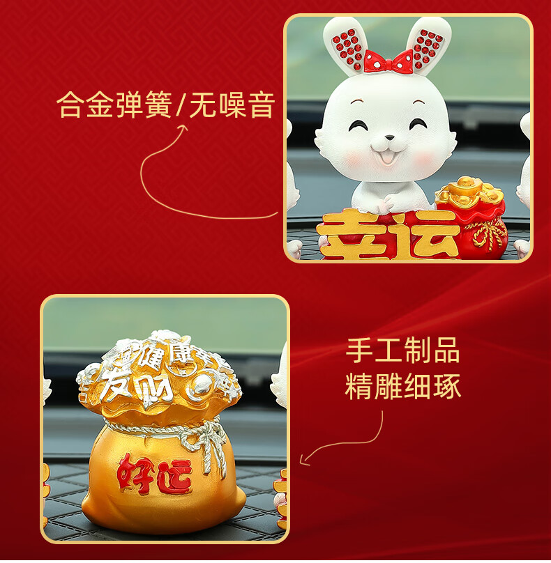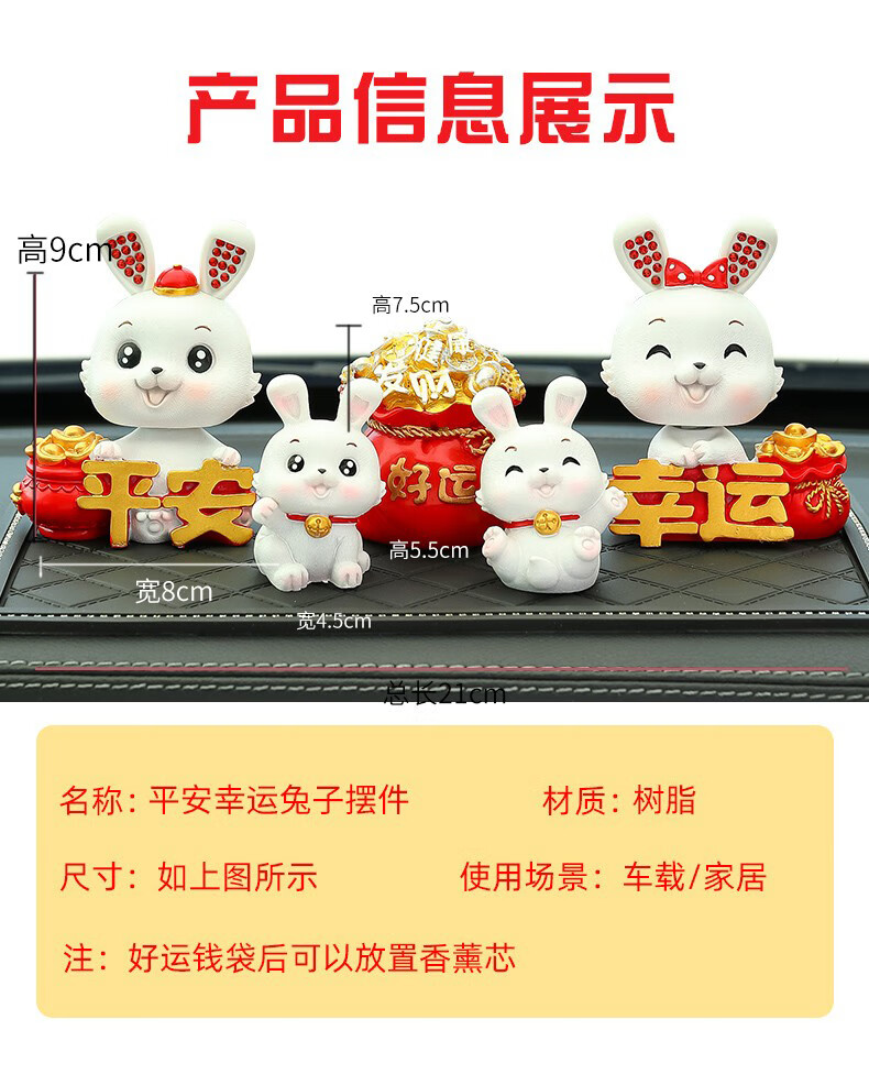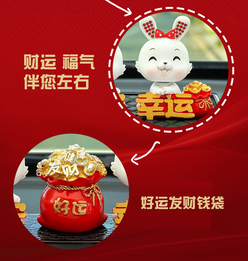 帆霸2023年新款中控台汽车摆件车载可爱兔子创意高档车内装饰用品大全