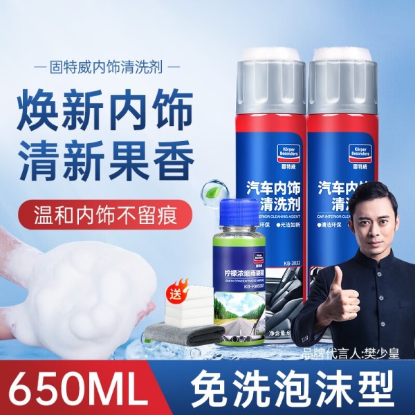 汽车内饰清洗剂洗车泡沫液车内织物顶棚皮革座椅清洁用品650ml*2