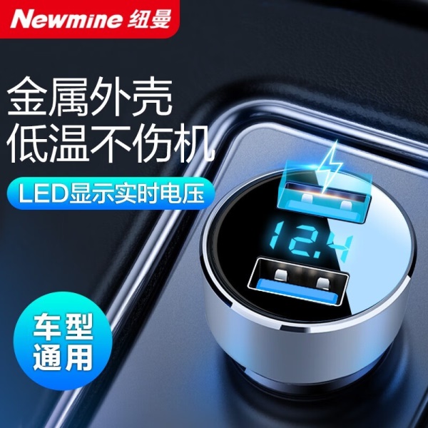 纽曼车载充电器一拖二超级快充12V24V通用点烟器苹果华为OPPO小米VIVO 3.1A智能数显款