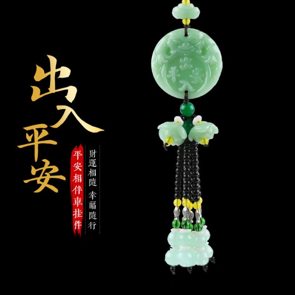 柬渝 汽车挂件车内饰品挂饰男士汽车高档吊饰女士车载吊坠摆件创意车载后视镜装饰 出入保平安符用品礼盒装 双面-出入平安(莲花款)